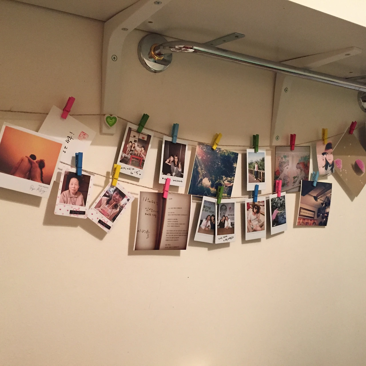 보고 싶은 얼굴들과 아끼는 사진들을 꺼내어 이렇게 선반 아래 쭉 걸어 두었다.