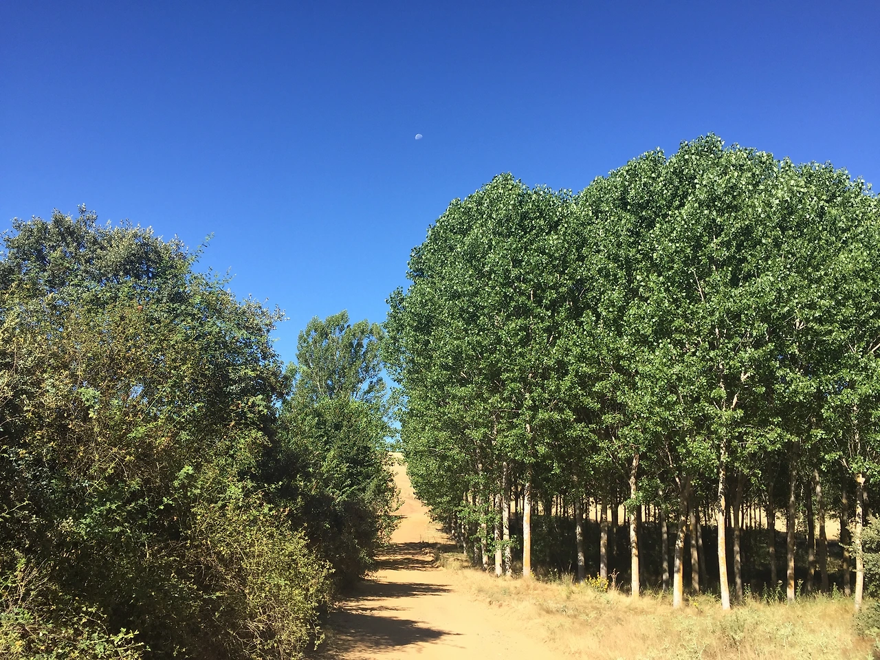 나는 만약을 대비해 호신용 스프레이를 손에 꽉 쥔 채 빠른 걸음으로 걷기 시작했다. 하지만 넓은 들판 길은 끝이 없고, 드디어 내 뒤에 사람이 둘 나타났다. 그런데 자전거를 탄 2명의 장정들이다. 도보 순례자가 아니니 더욱 무서워졌다. 그들이 점점 다가오자, 나는 심호흡을 크게 하고, 그들이 빨리 지나가길 기다렸다. 물론 호신용 스프레이를 발사할 만반의 준비를 다하고서. 손에 땀이 가득 찼다. 오, 주여!