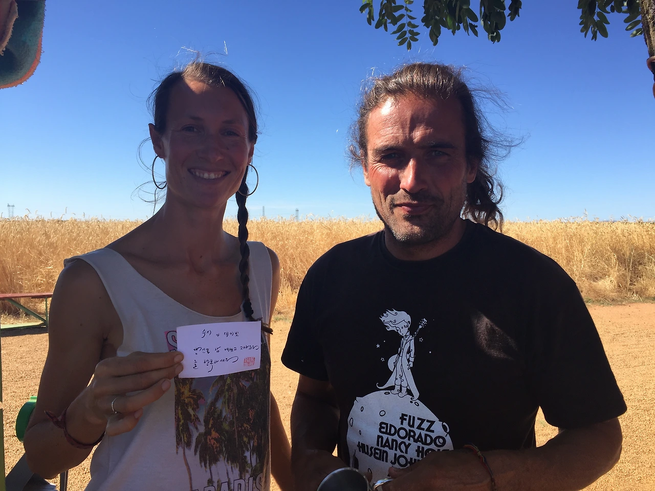 오스트레일리아 출신 수지와 데이비드가 기부로 운영하는 곳으로 음료수와 과일 수프 등 순례자를 위한 쉼터였다. 이곳에 도착하고 보니 길에서 자주 만났던 순례자도 보이고, 이름 그대로 '신의 집'에서 두려웠던 나의 마음은 평화를 되찾았다. 나는 순례길 스탬프를 찍고, 당근 주스와 수박을 먹으며 다른 순례자들과 잠깐 이야기를 나누었다.
