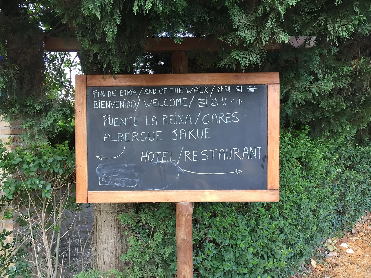 푸엔테 라 레이나(Puente La Reina)에 도착하자 환영합니다, 라는 한글이 우리를 환영해주고 있다.