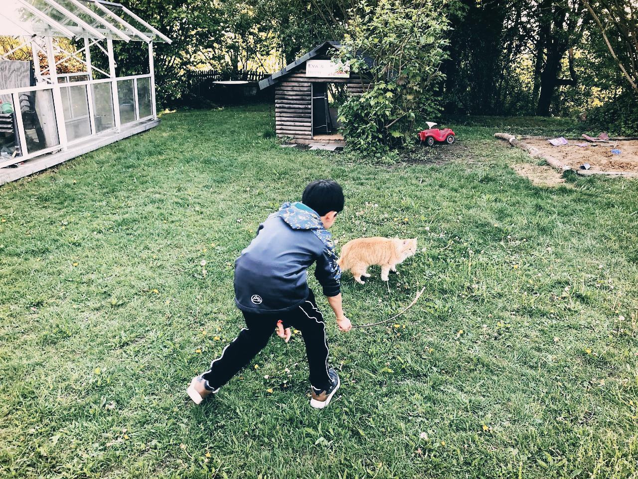 어느 날은 유치원 선생님들이 방문했다. 부활절 선물과 색지로 오린 빈 하트를 하나씩 들고, 오랜 기간 친구들을 만나지 못한 아이들을 위해 "숙제"라고는 하지만 심심한 시간을 때울 수 있는 거리를 들고 와 준 것이다. 각자 하트를 꾸며서 유치원 우체통에 넣으라고 했다. 잘 지내냐는 물음에 "아이들이 없어서 심심해"라는 대답에 진심이 느껴졌다. 비록 멀찍이 떨어져서 잠시 나눈 대화라도 아이들은 좋았나 보다. 또 다른 날은 고양이 손님이 찾아왔다. 워낙 고양이를 좋아하는 민트와 뭐든지 좋아하는 마빈, 그리고 형과 동생이랑 함께 하는 게 좋은 쪼꼬는 한참 동안 고양이 친구랑 놀았다. 주인이 있는 고양이 인지 사람을 무서워하지 않아서 열어 놓은 문으로 집 안까지 들어와서 일하고 있던 진국씨를 놀래키기도 했다.