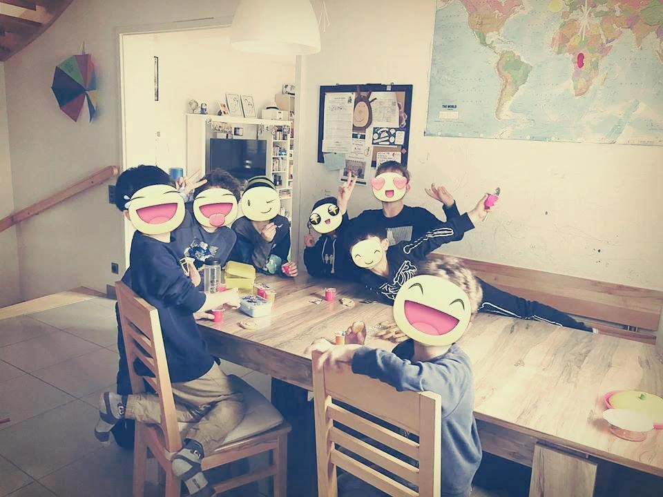생일 파티를 해도 되겠다고 확신한 것은 동네 친구들이 죄다 몰려온 날이었다. 큰 아이는 민트의 작은 아이는 쪼꼬의 친구인 아론과 말론 형제는(얘네들도 돌림자를 쓰나?) 하교 길에 함께 놀 거라며 우리 차를 같이 타고 집으로 왔다. 좀 있으니 제 집 드나들 듯 서로의 집을 드나드는 친구 둘, 바스티안과 마이키가 찾아왔다. 이로써 사내아이 일곱 명은 온 집안을 휘젓고 몰려다니며 놀았다. 자꾸만 배가 고프다며 부엌으로 쳐들어와 먹을 것을 요구하고는 메뚜기 떼 들처럼 흔적만 남기고 다시 몰려다녔다. 사랑스러운 녀석들...