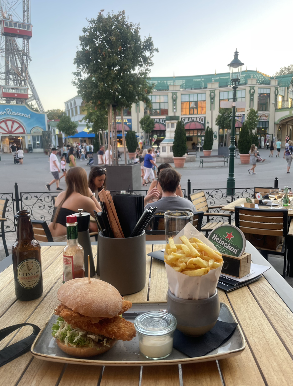 입장요금은 성인기준 13.5유로이다. 평일 목요일 저녁에 방문했음에도 공원은 많은 사람들로 북적였다. 특히일몰이 예쁘다고 유명한 곳이기 때문에 아침이나 점심때의 시간보다는 늦은 오후부터 밤까지의 시간에 훨씬 사람이 많다. 나는 애초에 놀이기구를 탈 생각은 없었기에 이용권은 끊지 않기로 했다.(프라터는 자유 이용권을 끊고 탑승하는 방식이 아닌 놀이기구 하나를 탈 때마다 표를 끊고 탑승하는 방식이다.)