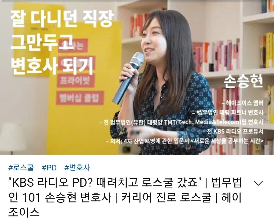 (김변: 이렇게 간단하게 답변주셔서.... 궁금한 제가 검색해보니 헤이조이스에서 강연하신 내용이 짧게 요약된유튜브 동영상 있네요. <KBS 라디오 PD? 때려치고 로스쿨 갔죠>!. 역시나 궁금하신 분들은 요기! )