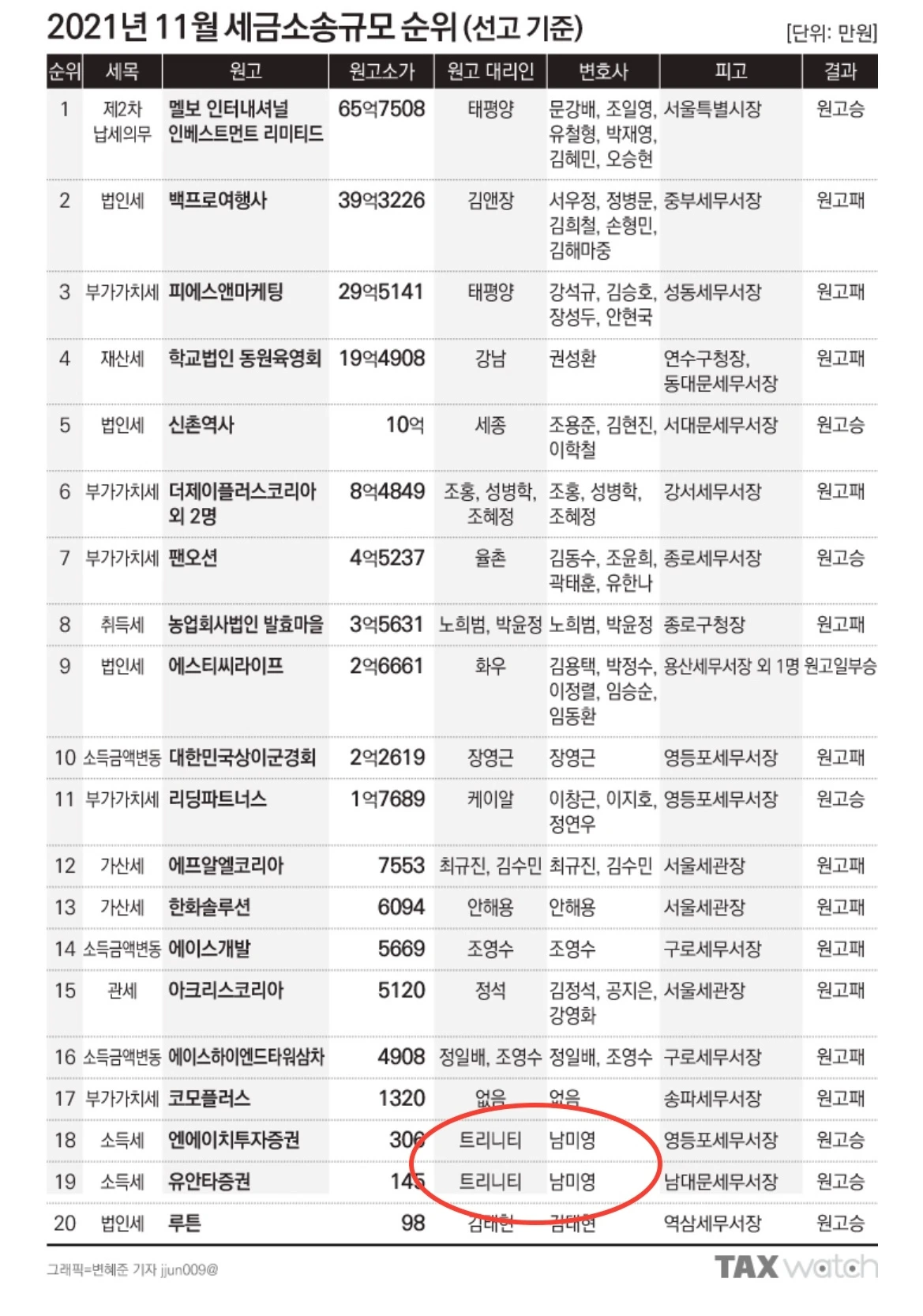 하지만 어찌어찌하다 보니 세금소송규모 순위 이런 데에 이름이 살짝 오르기도 했네요.