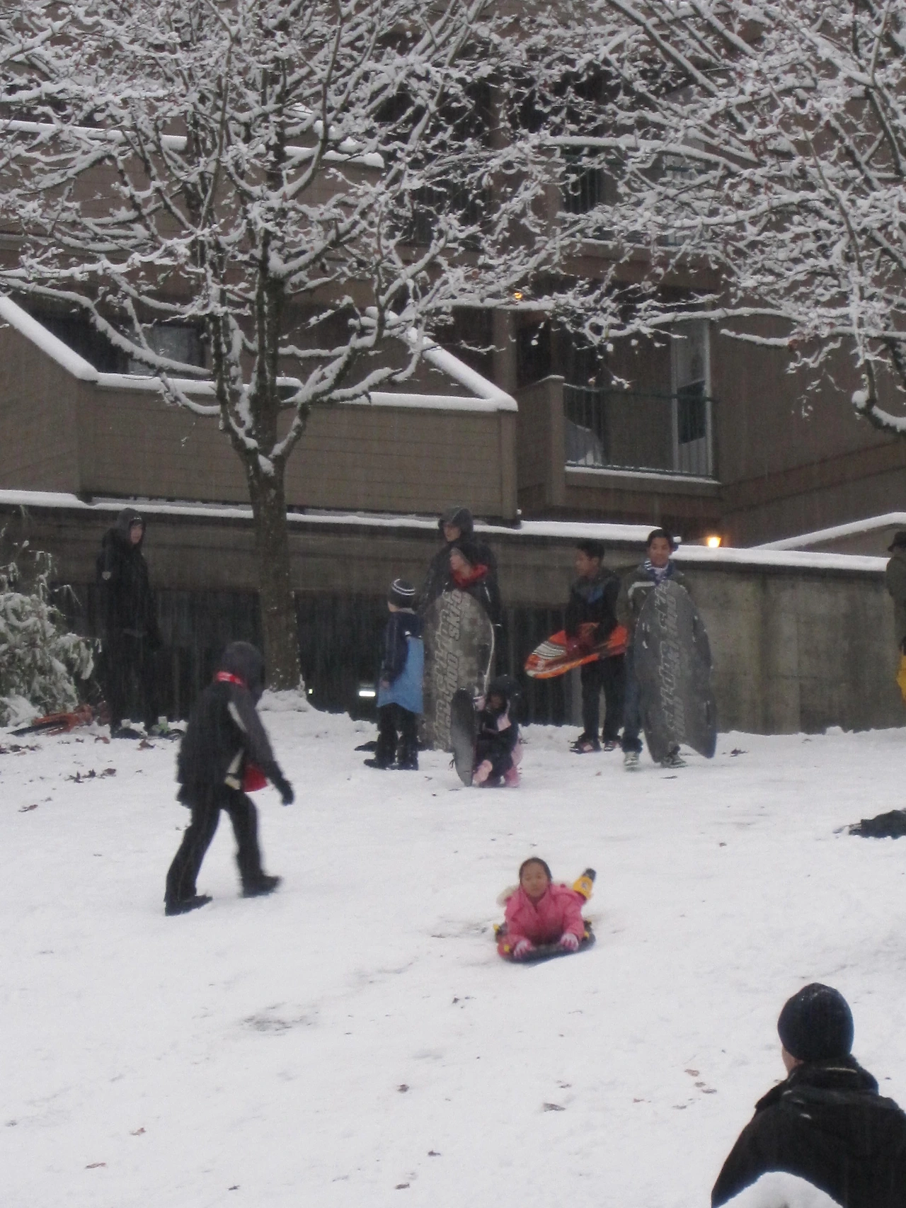 친한 HJ의 눈썰매를 같이 타고 놀았는데, 아니나 다를까 울 딸 자기도 하나 사달란다. 서울에서는 눈썰매 한번 타려면 큰 맘먹고 에버랜드나 서울랜드라도 가야 하는데, 눈은 기대 안 하고 온 밴쿠버에서 김만수 정말 신났다.