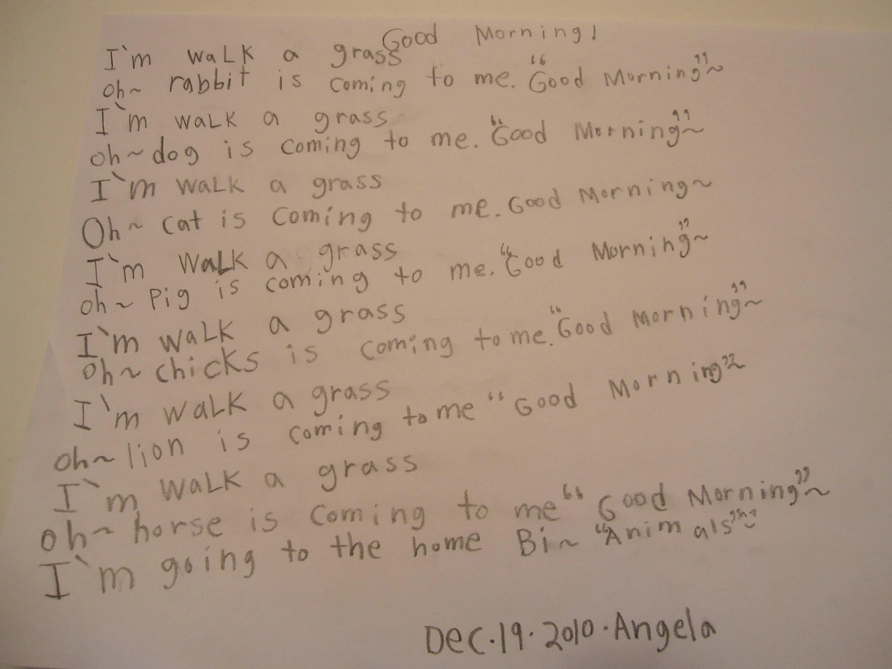 처음 한두 달은 주워들은 말로, 간단한 일상회화를 하기 시작했다. Say thank you라든지 Say 어쩌고 저쩌고 하면서 배운 영어를 나에게 강요(?) 하기도 했다. 만 3개월이 지나면서부터는 아는 단어도 꽤 늘고, 영어를 끄적거리며 쉬운 문장을 만들어 쓰기 시작하고, 영어로 동시를 두세 편 짓기도 했다.
