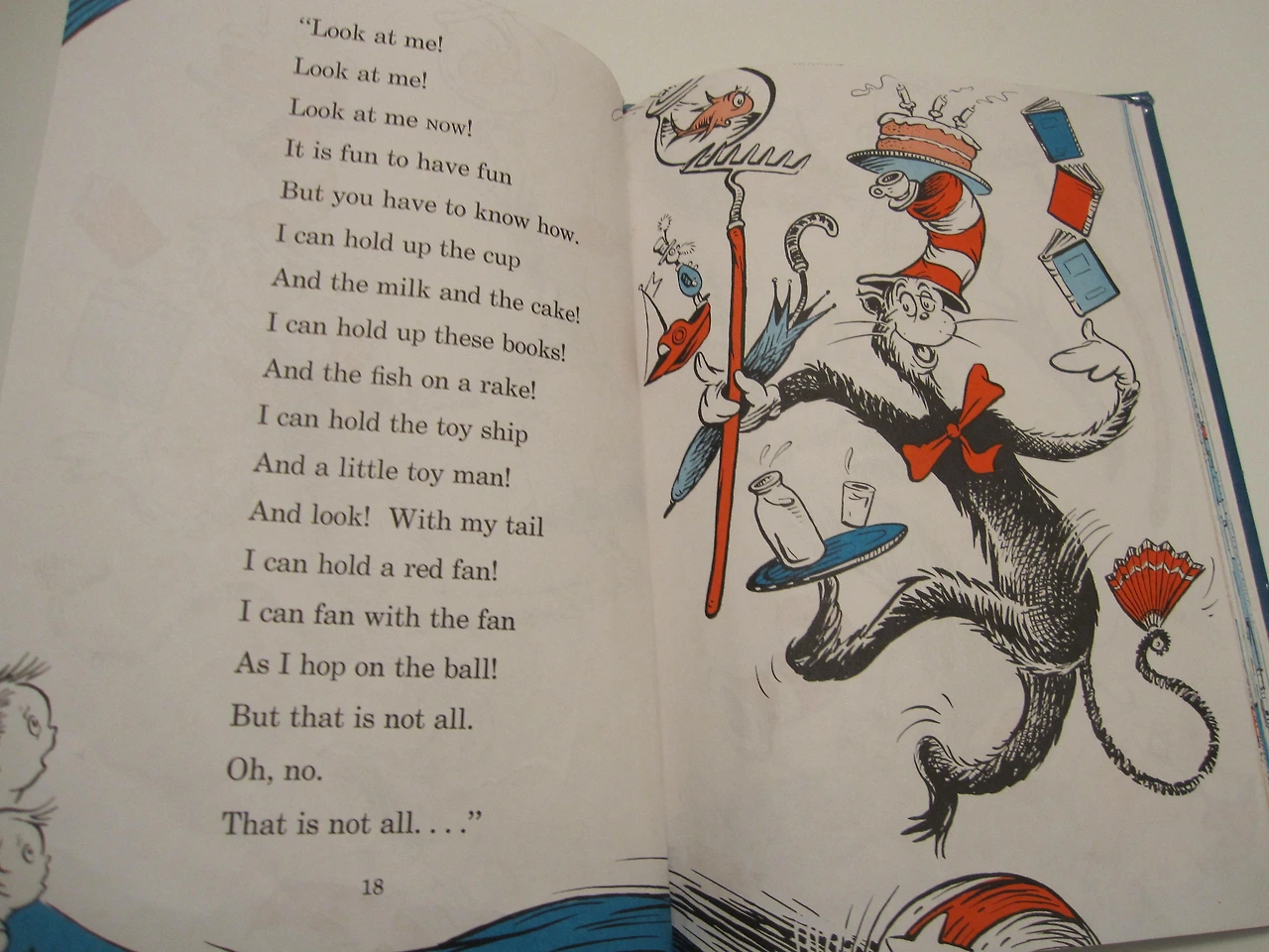 <The Cat in the Hat>이라는 제목의 책인데 내가 보니, 허거거거걱… 총 61페이지에, 한쪽은 그림이 대부분이어도, 다른 한쪽 페이지는 글이 빽빽하다.. 슬쩍만 봐도.. 아니다 싶다.