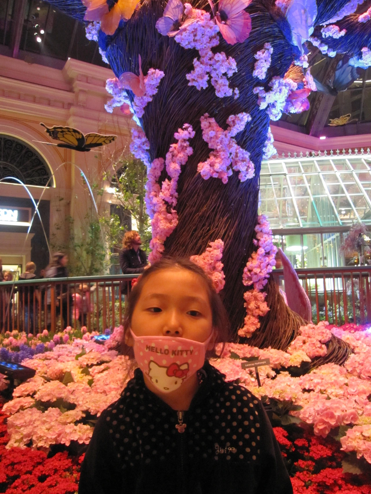 라스베이거스에서 가장 유명하다는 벨라지오 호텔은 너무나 아름다웠다. 밖에서 하는 분수쇼를 보고 나서 안에 들어가니, 꽃들의 향연이다. 진짜 나비도 있고, 무슨 식물원이나 거대한 화원에 온 듯하다. 시즌마다 수 억씩 들여 꽃장식을 바꾼다나.. 호텔 로비 천장에 있는 꽃잎 유리공예가 특히 너무나 아름다웠다. 꽃잎 한 장씩 만들어 붙인 것 같은데, 그 꽃잎 한 장이 백만 원이라고 ㅎㅎㅎ