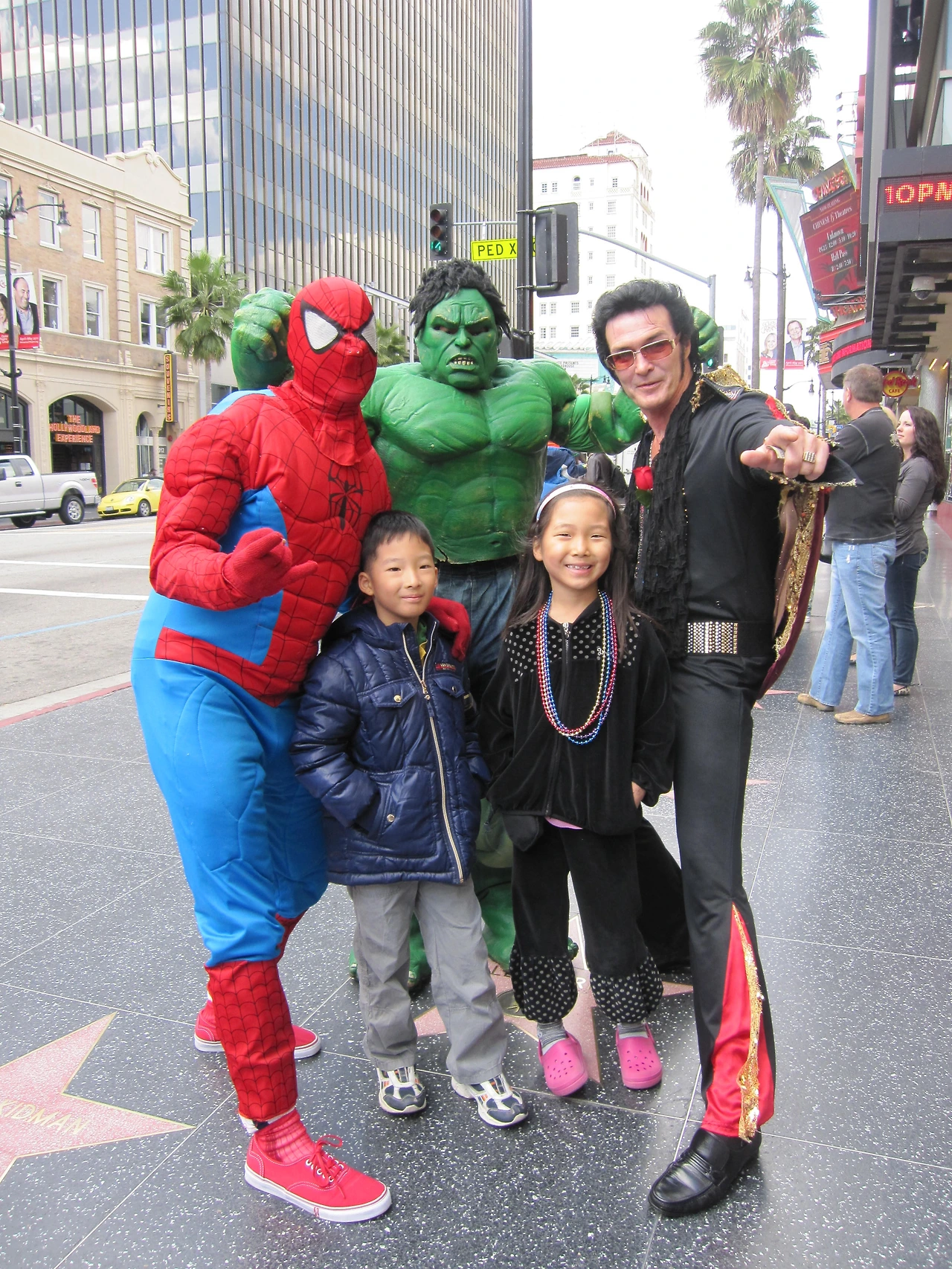 다들 해보는 손바닥 대보기 우리도 했다. 헐크랑 스파이더맨이랑 기념 촬영(돈 줘야 한다)