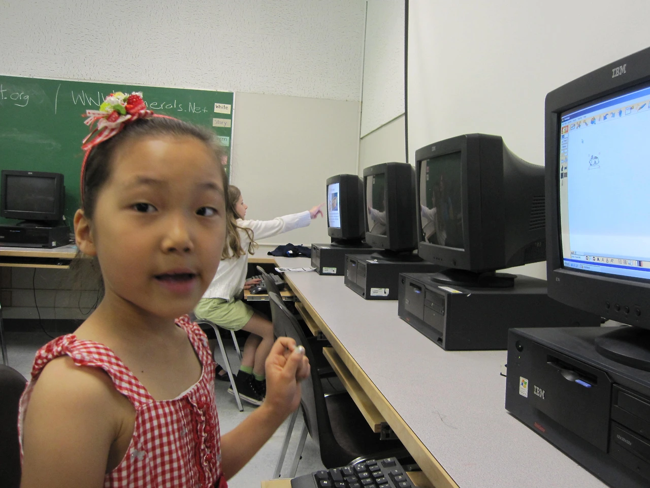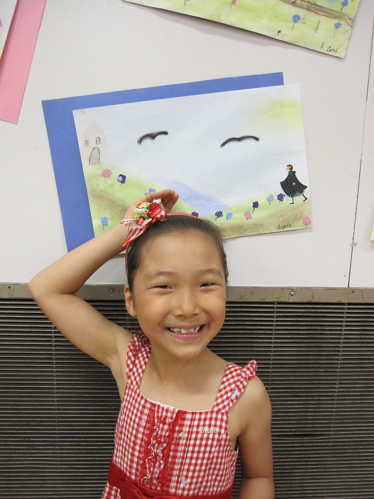 항상 수업 시작 때 한다는 날짜와 요일, 날씨 등을 담은 노래도 들려주고, gym에 딸아이 작품이 걸려있는 것도 보고, 컴퓨터실에 가서 어떤 수업을 했나 보여주기도 했다.