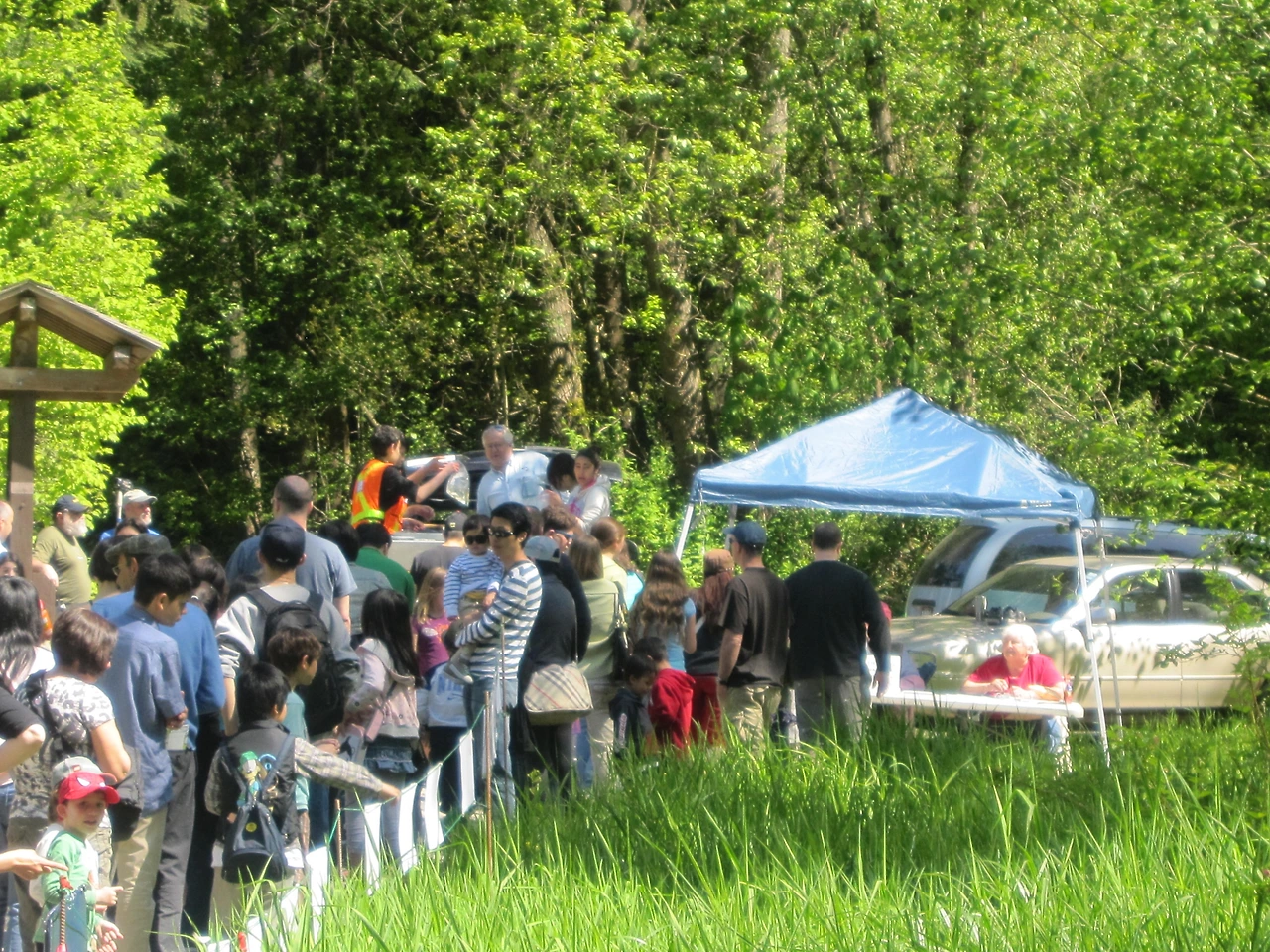 매년 5월 초 아이 학교 주최로 Salmon Send-Off 행사가 있었다. ‘연어 방생’이라고 해야 하나.. 딱히 학교 행사는 아니고 지역 주민들 남녀노소 모두 참가하는 행사로, 학교 근처 숲에서 줄을 서서 지퍼백에 들은 새끼 연어들을 받아 시내에 놓아주는 것이다. 우리가 보낸 애들이 2-3년 후에 다시 여기로 돌아온다나.. 그 아이들을 우린 못 보고 귀국한 게 된 거다. 아쉽게도..