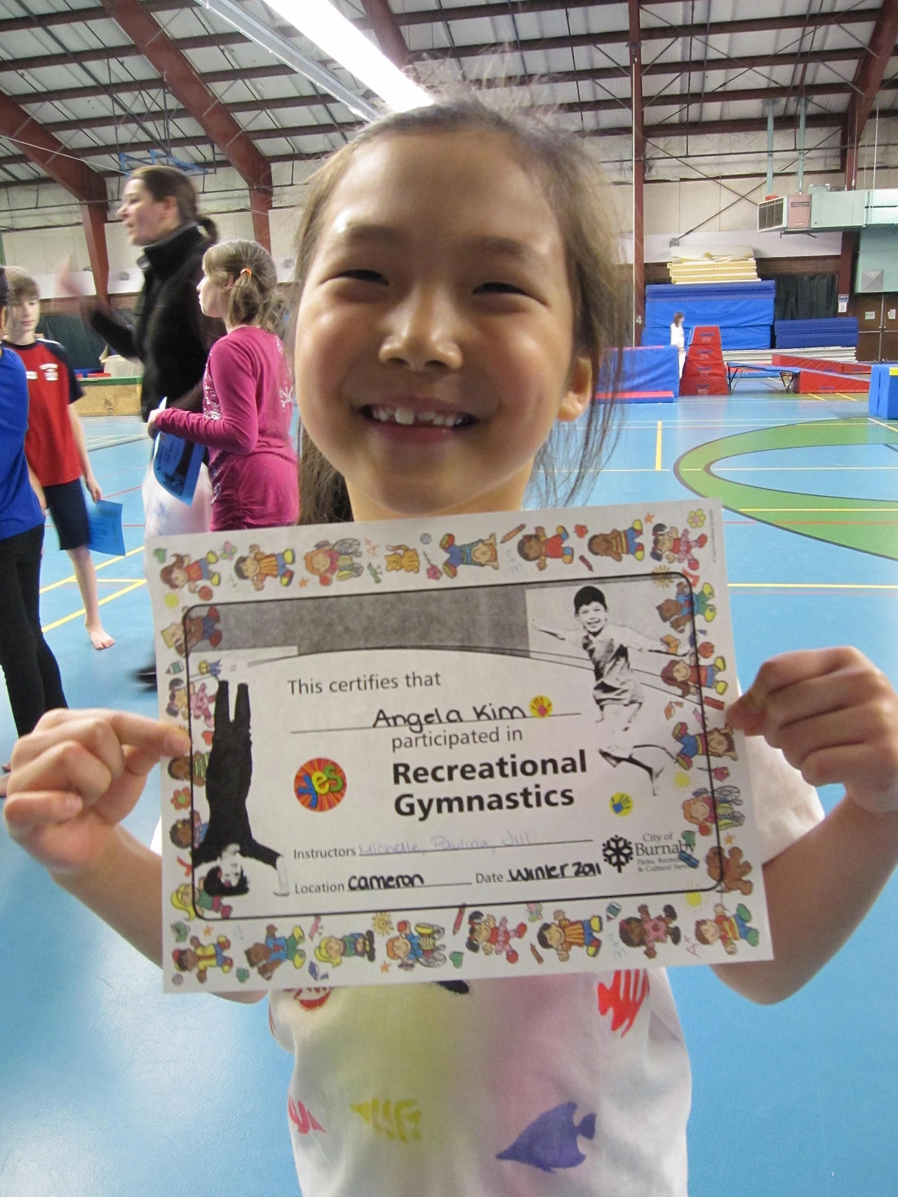 캐나다 입성하고 3-4 개월이 지난 후부터 집 앞 Cameron Community Centre에서 방과 후 수업으로 gymnastics(체조)를 시작했다. 몸으로 하는 것이니 영어가 좀 안돼도 할 수 있겠다 싶어 동네 친구와 함께 보내 보았다. 이 체조 수업은 항상 인기여서, 1년 내내 거의 마감이다. 대기 걸었다가 운 좋게 연락이 와서 시작하게 되었는데, 워낙에 울 딸은 활동적이고 몸으로 노는 것을 좋아하다 보니 너무나 좋아라 했던 수업이다. 이 수업도 한국에 돌아오기까지 1년 반 이상을 다녔다.