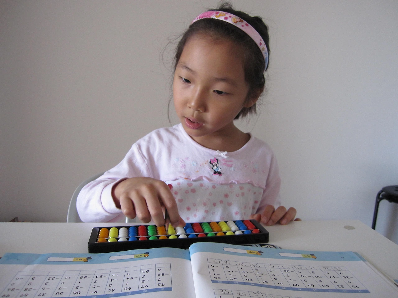1학년 1학기를 마치고 캐나다에 갔기에 연산을 해야 하는 시기였다. 한국에서 가져갔던 수학 일일학습지를 너무 하기 싫어하던 차에 마침 제규가 주산학원(한국 선생님이 하시는)을 다닌다고 하여 같이 보내 보았다. 다행히도 흥미를 느끼고 잘하여 한국에 돌아올 때까지 거의 2년을 꾸준히 주산학원에 다녔다. 실력이 나날이 좋아져서 선생님께 칭찬도 많이 듣고, 선생님이 다른 학부모들(한국, 중국, 심지어 캐나다 사람들도 가끔 보낸다)에게 앤젤라 암산하는 것 좀 보라고 자랑도 해주시곤 하였다.