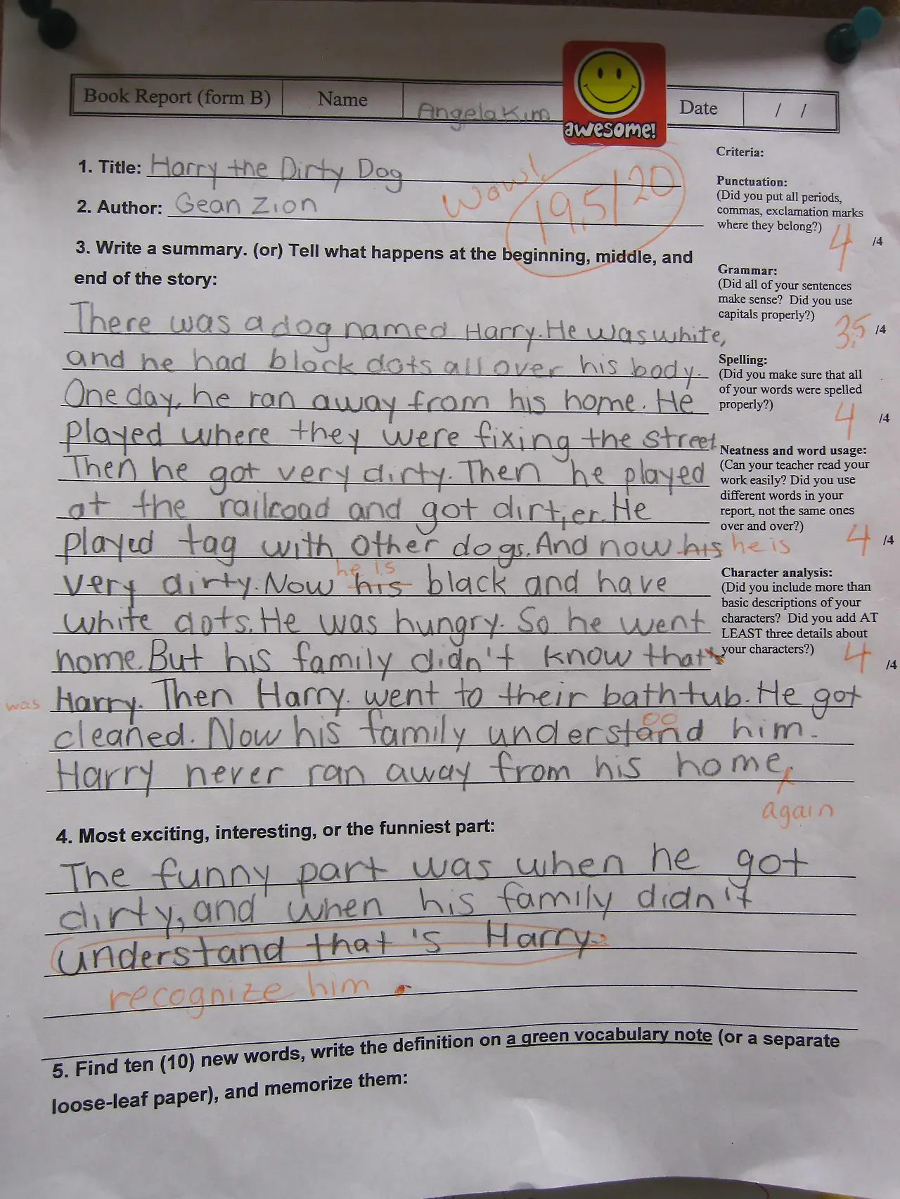 나중에 다른 영어학원을 소개받아 옮겼는데 그때 만난 원장님(한국인)과 아이 담당 원어민 선생님 두 분 다 너무나 좋으시고 수업 방식도 좋아서 한국 돌아올 때 참 아쉬워하고 슬퍼했던 기억이 난다. 여기서 특히 writing 실력이 부쩍 늘어서 아이가 한국에 돌아와서 우리말로 글을 쓸 때도 기반이 되어 주었던 것 같다.