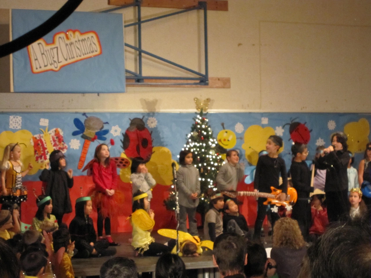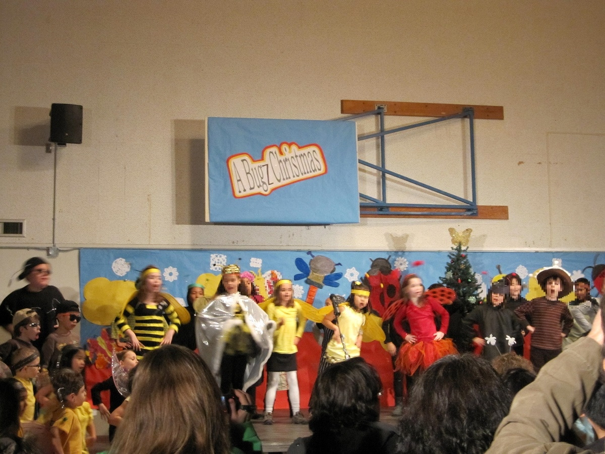 저학년 전체가 모두 참여하는 뮤지컬이라, 대사가 없는 아이들도 많고, 있어도 대부분 한두 줄이다. (킨더부터 7학년까지 전교생이 200~250명 정도였으니, 못해도 100명은 되지 않았을까) 울 만수는 다행히도 대사가 한 줄 있었다는... ㅋㅋ 제목부터가 'A Bugz Christmas’(원래는 Bugs'가 되어야 맞겠지만 Bugz로 표기되어 있었다) 즉, 벌레들의 크리스마스)'여서, 모든 아이들이 곤충 또는 벌레로 분장. 어찌나 귀엽던지..