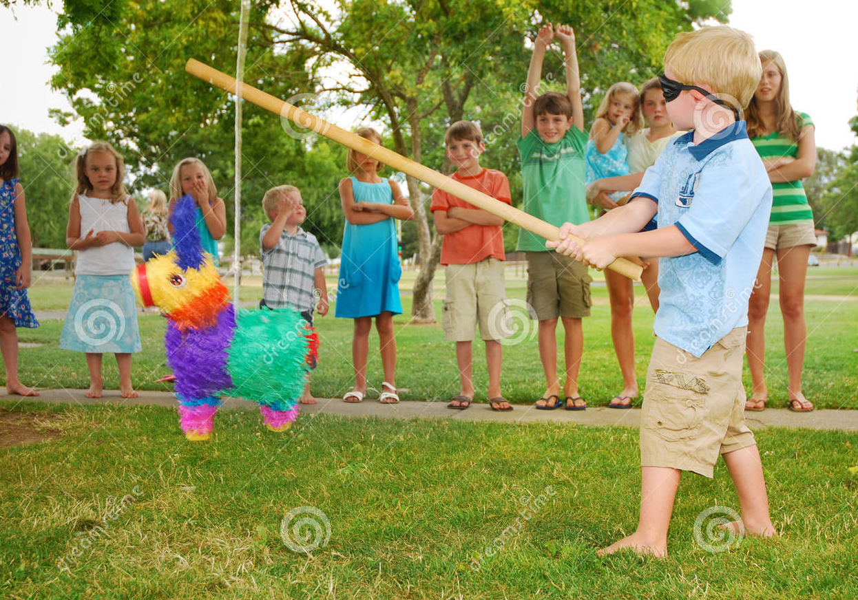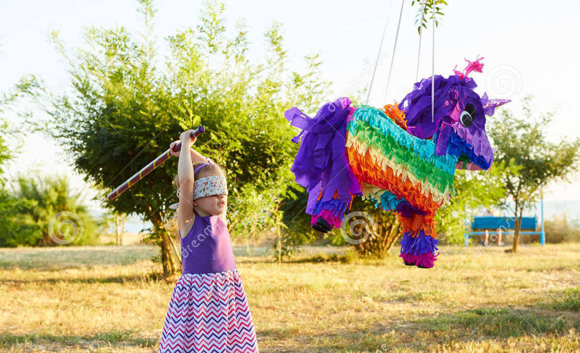 Pinata 터뜨리기_눈을 가리고 곤봉으로 내리치는게 원래 룰이라고.. Dreamstime.com에서 가져옴