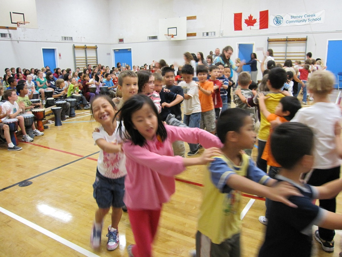 이틀간 아프리카 드럼 연습을 했다고 했다. 이틀 연습하고 오후에 학부모들을 초대하여 체육관에서 전교생이 아프리카 드럼 연주를 선보였다. 학년별로 3팀으로 나눠서 드럼도 치고, 선생님과 아이들이 나와서 춤도 추고 (선생님들이 어찌나 열정적으로 춤을 잘 추시던지.. ) 마지막에는 고학년들이 신나게 드럼을 쳐주면, 저학년 아이들과 선생님들, 교장선생님까지, 그리고 학부형들까지 어깨동무를 하고 신나는 기차놀이 한판.. 그야말로 이 세상 텐션이 아닌.. 하얗게 불태운 시간.. 우리만 흥의 민족이 아닌 듯...