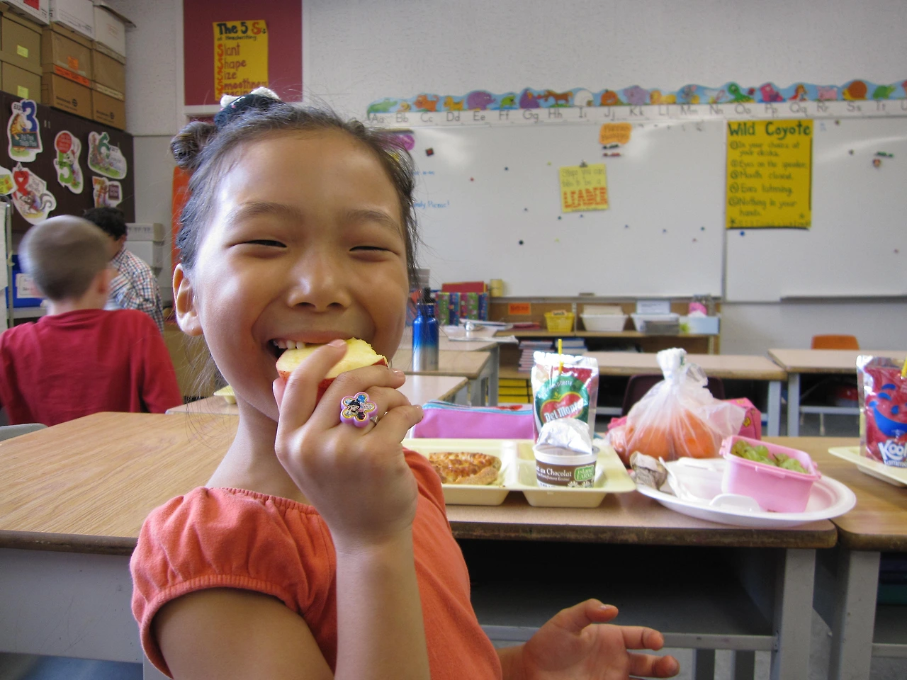 임시반 마지막 날이었던 것 같은데, Family Picnic이라는 소소한 행사도 있었다. 점심시간에 학부형들이 와서 아이들과 함께 점심을 먹는 행사였다. 아이들은 급식으로 피자가 나오고, 학부형들은 직접 싸오든지, 2.50달러를 내고 미리 핫도그를 주문해서 같이 먹어도 된다. 아이와 같이 급식실에 가서 받아다가 원래는 운동장에 나가 정말 피크닉처럼 벤치에서나 돗자리를 펴고 먹는 거였는데 비가 조금 와서, 그냥 교실에 들어가 먹었다. 교실 바닥에 돗자리를 펴고 앉아서 먹는 집도 있었다. 별거 아닌데 아이와 함께 학교 생활을 나누고 다른 학부형들과 교류도 할 수 있는 좋은 경험이고 추억인 것 같다. 이후에도 학교에서 뭐 먹는 행사가 꽤 많았다는..