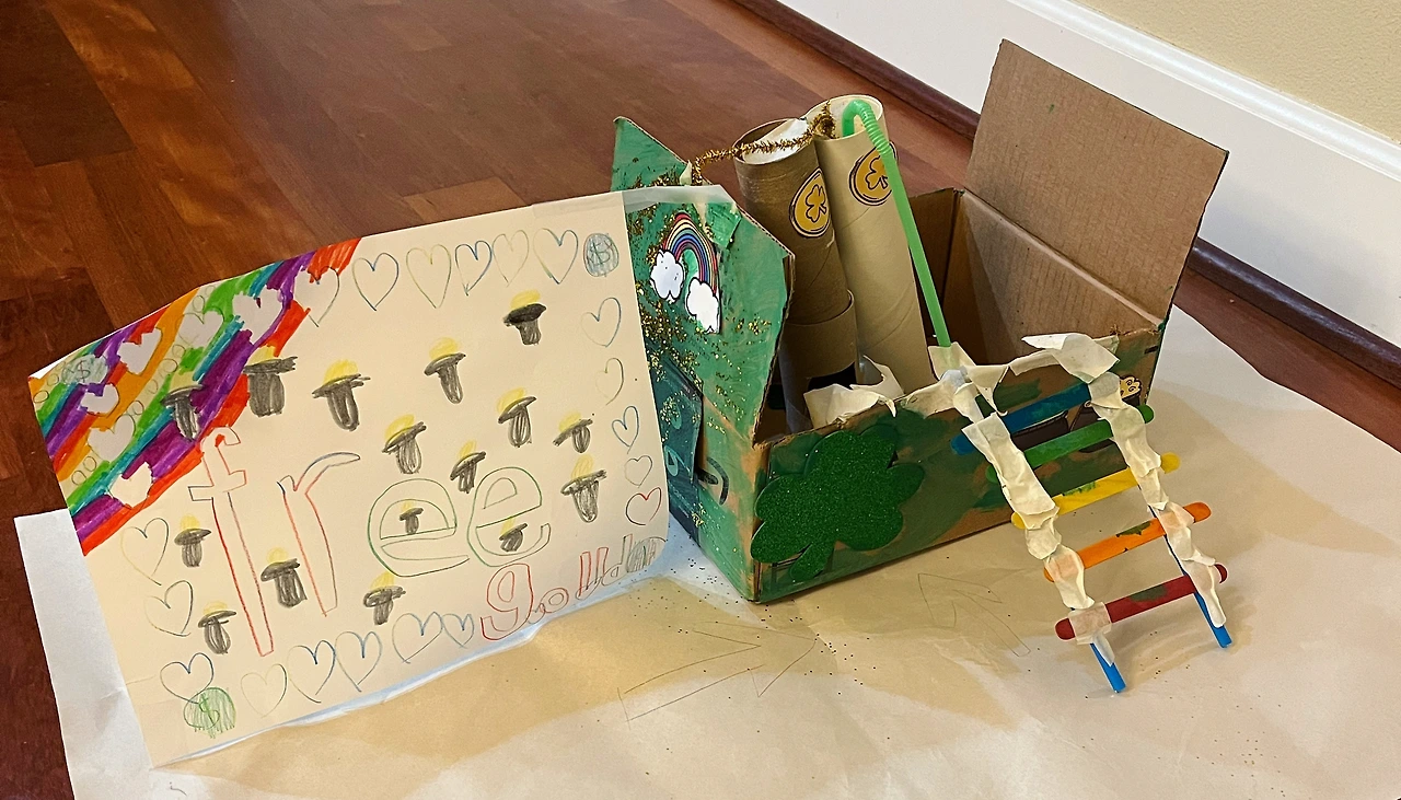 집에 있는 운동화 박스와 휴지심, 종이 접시, 빨대, 색도화지 등을 챙기고, 마트에 가서 성패트릭의 날 스티커를 사서 등굣길에 들려 보냈다. 3월 16일에 학교에서 덫을 만들었고, 다음 날 레프러콘을 못 잡았다면서 집에서 잡겠다고 덫을 들고 왔다. 레프러콘이 근처에 있으면 색이 변한다는 구슬팔찌를 차고 와서 한동안 열심히 찾아다녔다. 온 집안에 반짝이를 흩뿌리며 며칠을 기다렸지만 레프러콘이 나타나지 않아 덫은 며칠 전 조용히 철수시켰다.