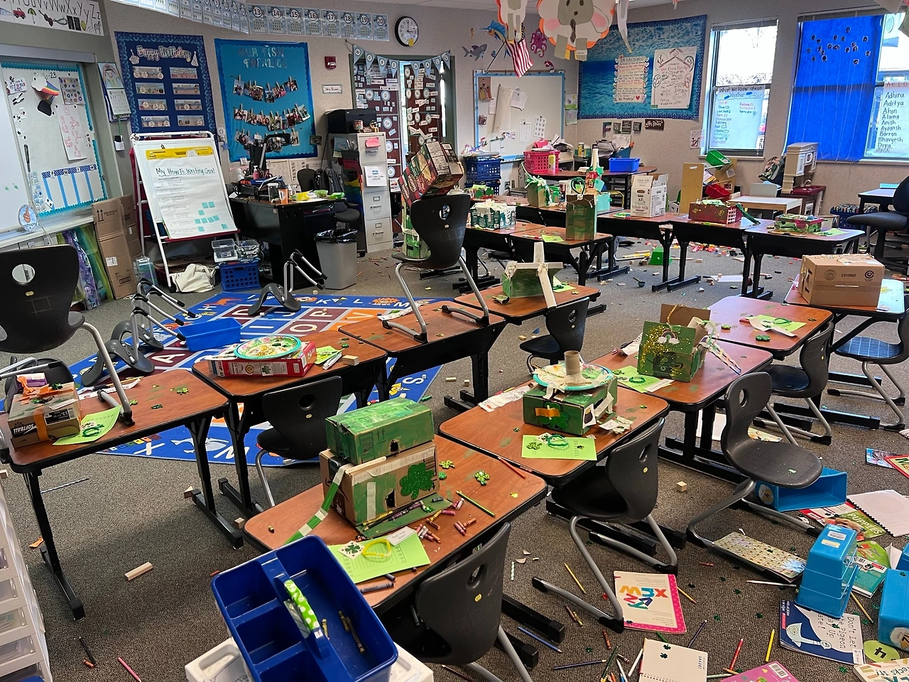 레프러콘이 교실을 완전 엉망으로 만들었다는 얘기는 아이에게 들었는데, 선생님이 보낸 사진을 보고 진심으로 놀랐다. 이렇게나 작정하고 어지르시다니요. 선생님 존경합니다. 아이들이 교실에 들어가는 영상도 있는데 정말 놀라고 신나 하는 표정들이다. 때마다 이벤트가 있고 그때마다 기부하거나 뭘 만들어야 해서 번거롭기도 하지만, 아이들이 기대하고 좋아하니까 그 맛에 하는 거지 싶다. 레프러콘(이라 쓰고 선생님이라 읽음)이 뒤집고 간 교실은 아이들이 모두 치웠다고 한다.