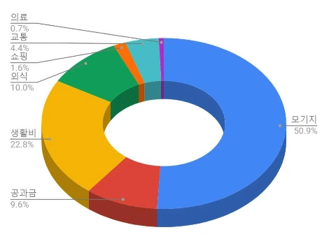 정기적으로 나가는 돈은 관리비, 인터넷, 수도세, 전기/가스비, 쓰레기처리비, 전화비 정도가 있다.
