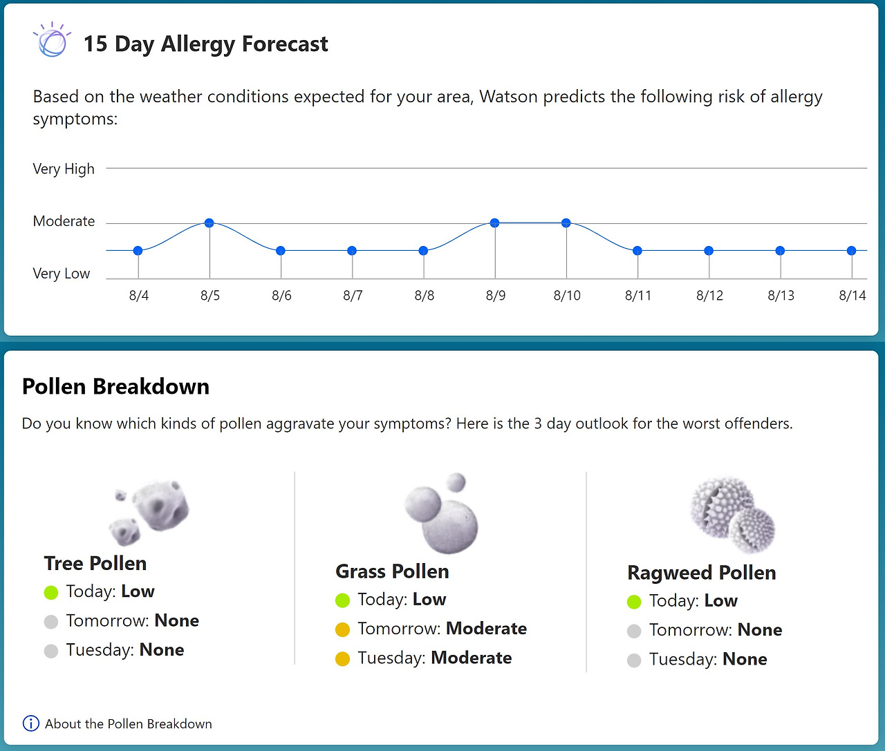 우리동네 알레르기 예보 - 출처 : https://weather.com