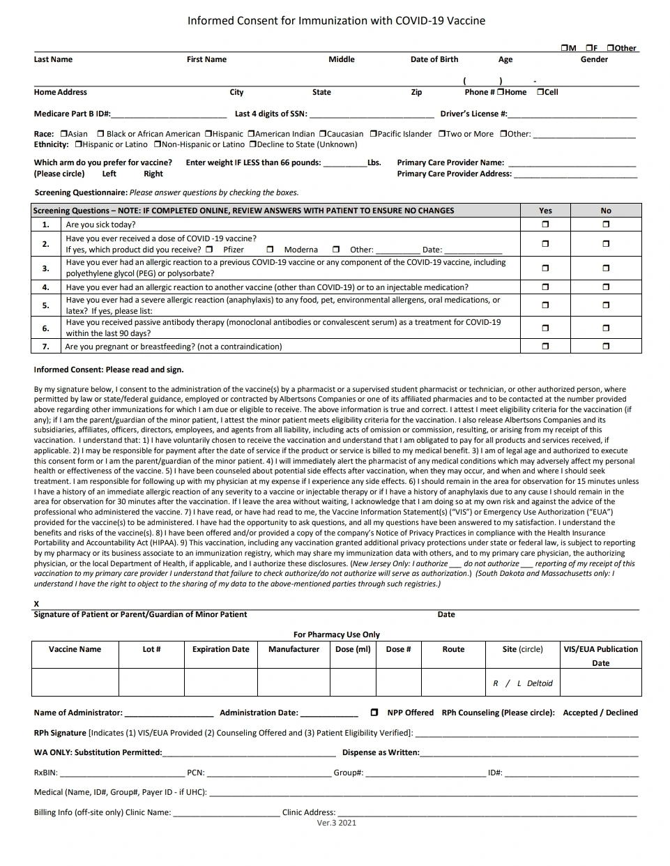 예약 확인 이메일에 미리 작성해 오라는 문서(consent form)가 있어서 그걸 들고 약국에 갔더니 나와 같은 시간대에 예약한 사람들이 접수를 하고 있었다. 며칠 전에 12세 이상도 Pfizer 백신 승인이 났다고 하더니만 중학생으로 보이는 두 명이 대기실에 앉아 있었다. 살짝 놀라서 중학생 자녀가 있는 지인에게 물어보니 이미 학교에서 단체접종도 하고 있다고 한다. 지난달부터 접종률이 떨어지고 있다던데 10대 아이들의 접종으로 다시 탄력을 받을 수 있을까.