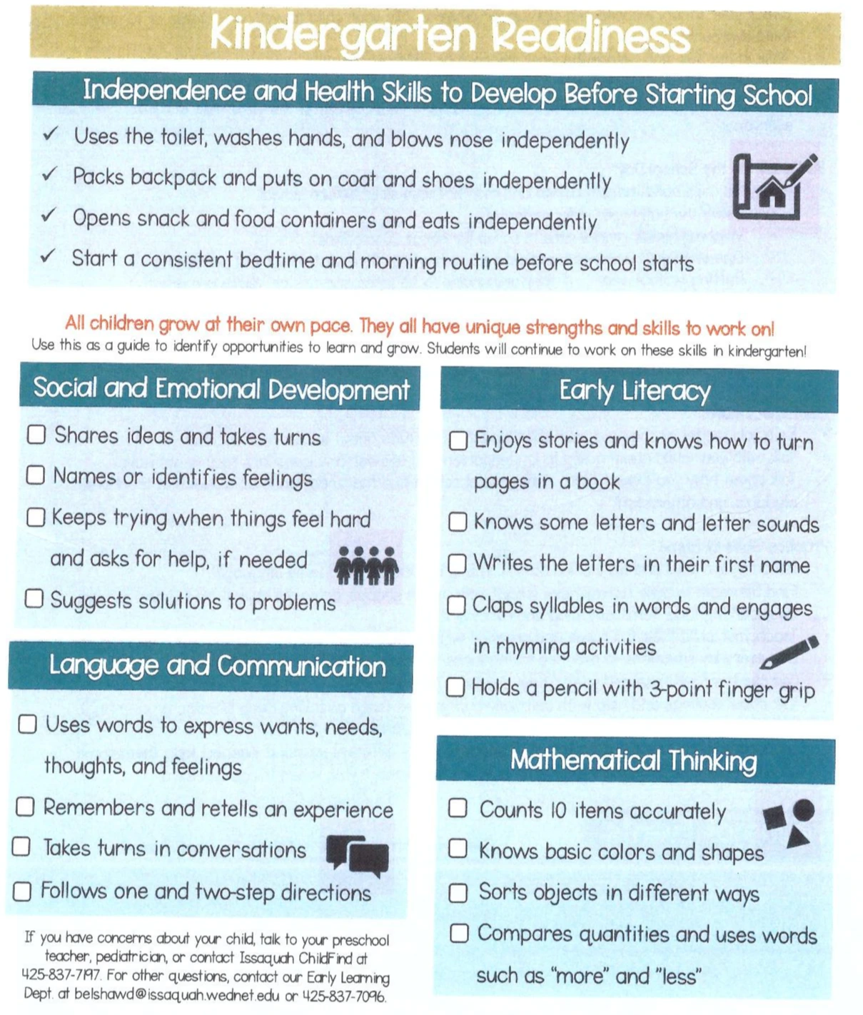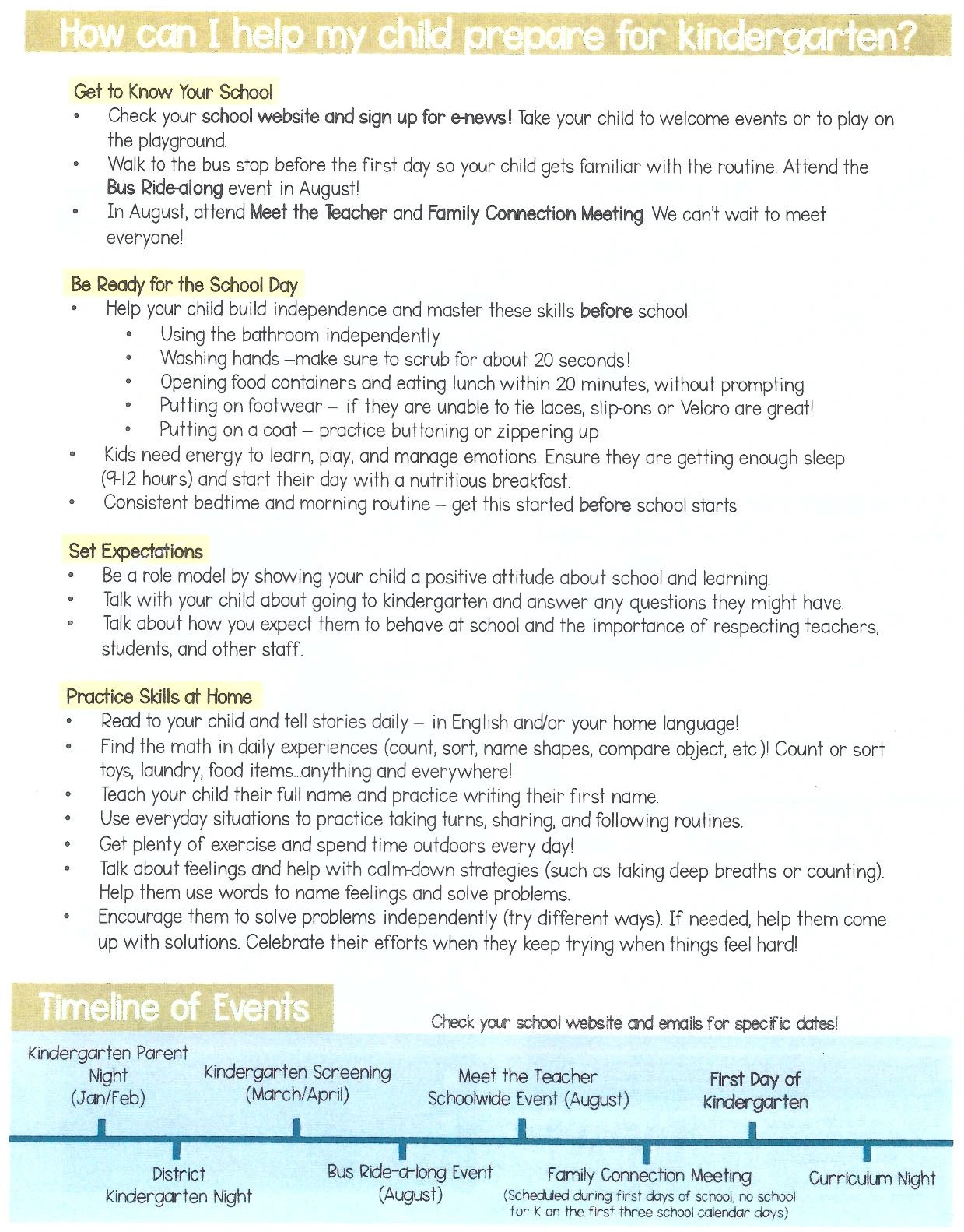 학교에서 준 자료에는 앞으로의 일정과 아이들에게 준비시켜야 할 사항에 대한 안내가 있었다. BASC(Before and After School Care)에 대한 안내문도 있었는데, 오전 6시 반부터 등교 전까지-하교 후부터 오후 6시 반까지 돌봄 교실을 운영한다는 것이 놀라웠다. 수업시간도 9시부터 3시 40분(수요일은 1시 반)까지 긴 편이다. 여기는 일단 공교육 문을 밟으면 부모들이 한결 수월해진다는 게 맞나 보다. 그밖에 올해부턴 우리 교육구에서 영어-스페인어 이중언어학교가 개관하니 관심 있는 사람은 신청하라는 안내도 있었고, 아이의 건강상 주의할 부분이 있으면 학교에 통보하라는 신청서도 있었다.
