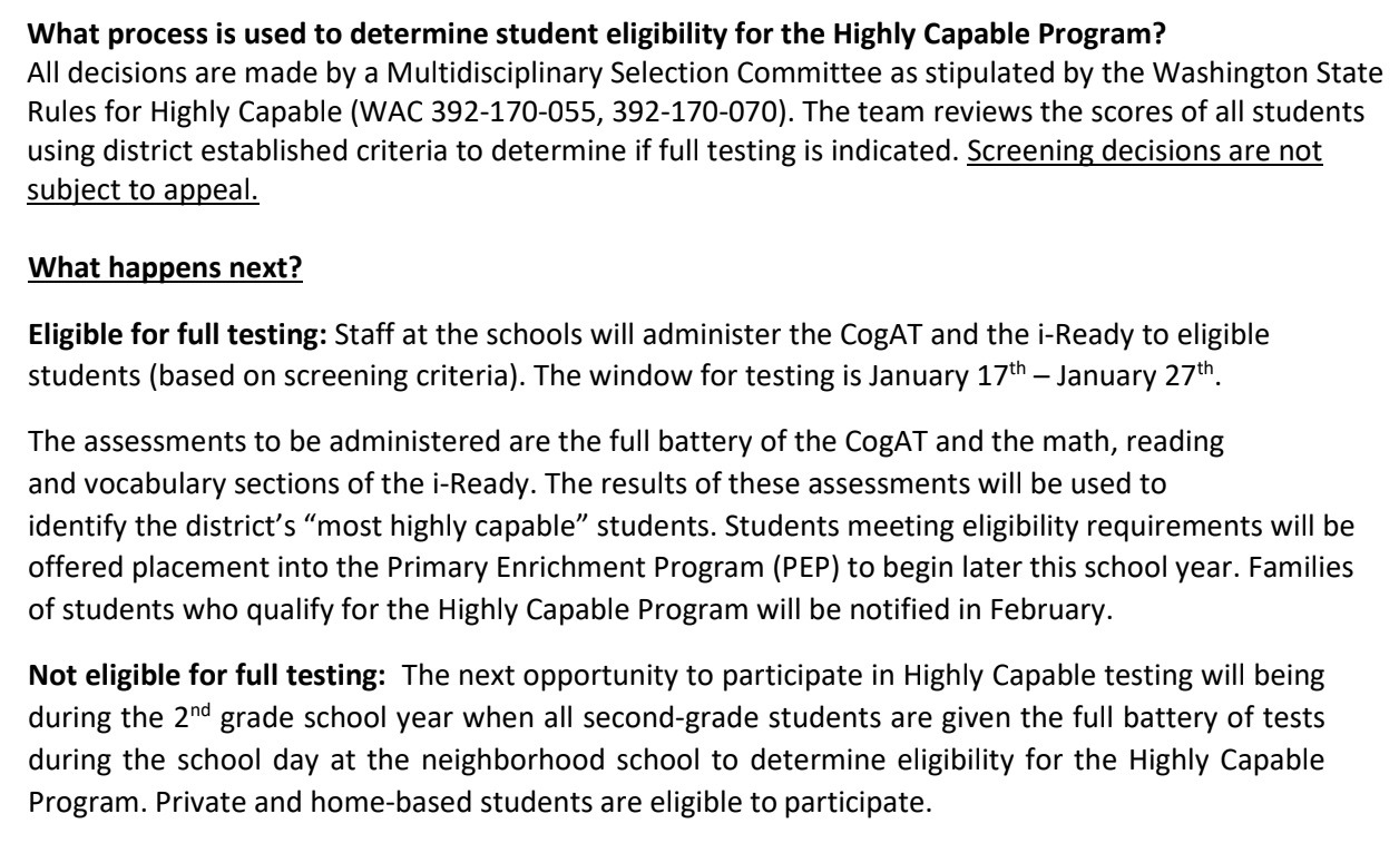 미국 학교 Highly Capable Program