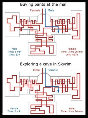 위의 그림은 여성과 남성의 미션을 수행하기 위한 동선의 차이를 나타내는데, 꼭 성별의 문제가 아니라 목적의 차이라고 생각한다. 미션이 주어지면 유저는 목적과 갈 곳이 분명해진다. 나는 가급적 모든 방과 통로를 가기 위해 노력한다. 내가 좋아하는 MAP UI는 갔던 길과 안 갔던 길의 차이가 나타나는 UI이다. 나는 원큐 플레이를 선호하므로, 미션을 클리어하기 전 모든 방을 뱅글뱅글 돈다. 규칙 없이 그때 그때 가면서 돌면 자칫 헤매기 쉬우므로,나는 미로를 탐험할때의 규칙을 정해두었다. 위저드리 스타일의 던전형 미로를 돌 때는 나는 무조건 오른쪽 길로 간다. 막힌 길이라면 뒤돌아 그 전 통로에서 좌회전한다. 그리고 이 과정을 반복한다. 내가 싫어하는 경우는 본의 아니게 골에 먼저 도착했을 때, 이벤트 후 그 던전을 다시 진입할 수 없는 경우이다. 아.. 아까 마지막 방 못 갔는데.. 뭔가 있었을 거야 ㅠㅠ