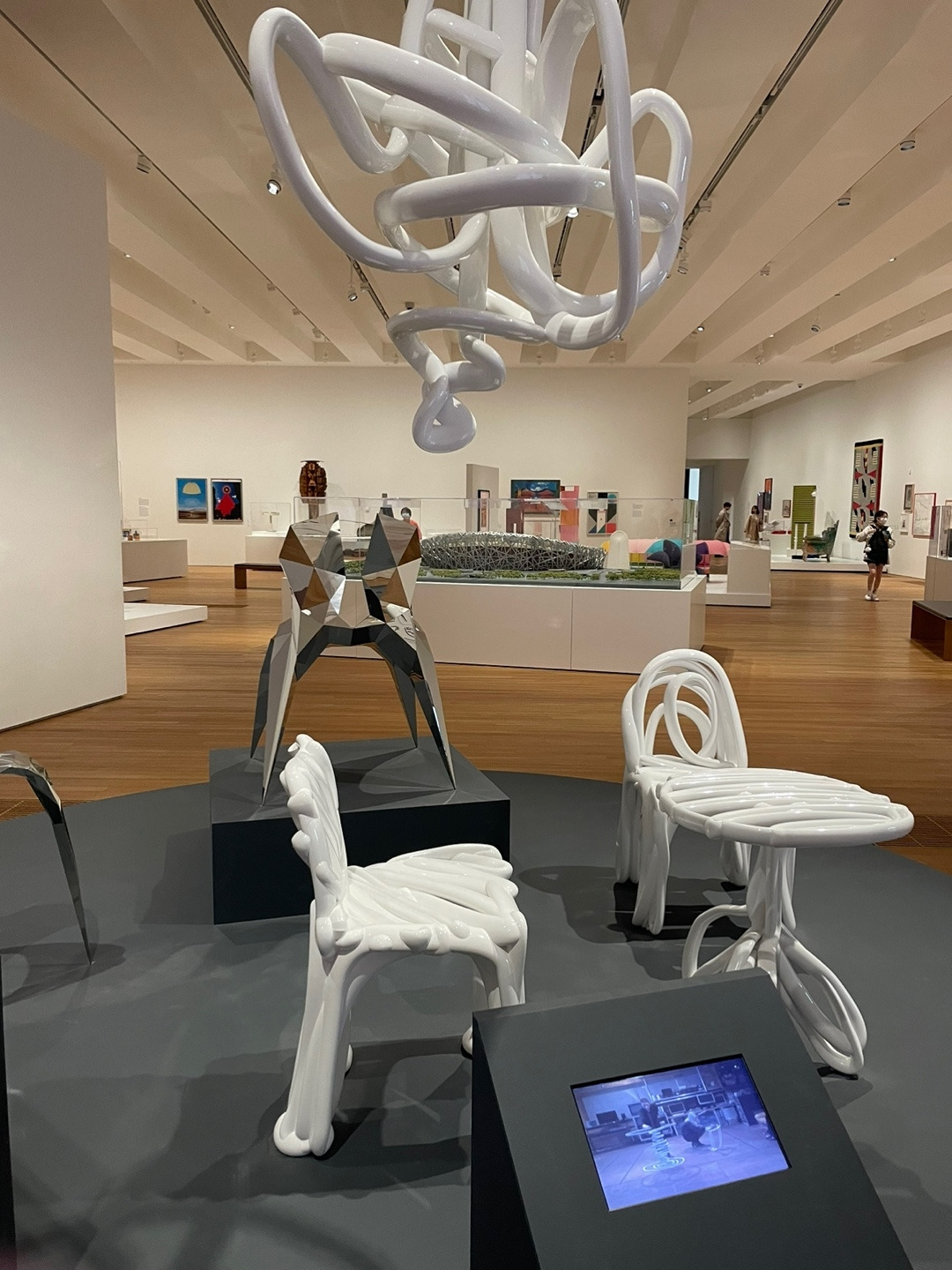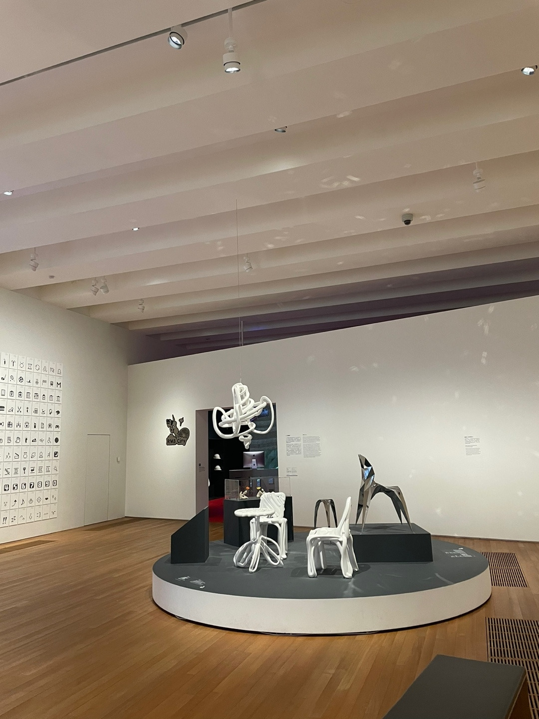 엠플러스 뮤지엄에는 크게 4개의 전시장이 위치해 있다. 먼저 율리 시그의 기증작을 모아놓은 시그 갤러리, ‘Things, Spaces, Interactions’라는 주제의 상설전이 위치한 이스트 갤러리, 매번 새로운 주제로 컬렉션과 현대 미술을 조명하는 웨스트 갤러리, 사우스 갤러리, 대형 인스털레이션이 설치된 포커스 갤러리 등이 모두 건물 2층에 위치한다. 1층에는 동영상 센터, 뮤지엄 숍, 각종 포럼이 진행되는 ‘러닝 허브’와 ‘더 포럼’이 있고, 지하 1층에는 ‘M+ 시네마’, ‘키즈 숍’, F&B 공간, 3층에는 설치 미술을 감상할 수 있는 루프탑 가든과 레스토랑이 운영 중이다. 이 중에서 디자인과 건축을 집중적으로 조명한 이스트 갤러리의 전시 ‘Things, Spaces, Interections’에 대해 서술하고자 한다.