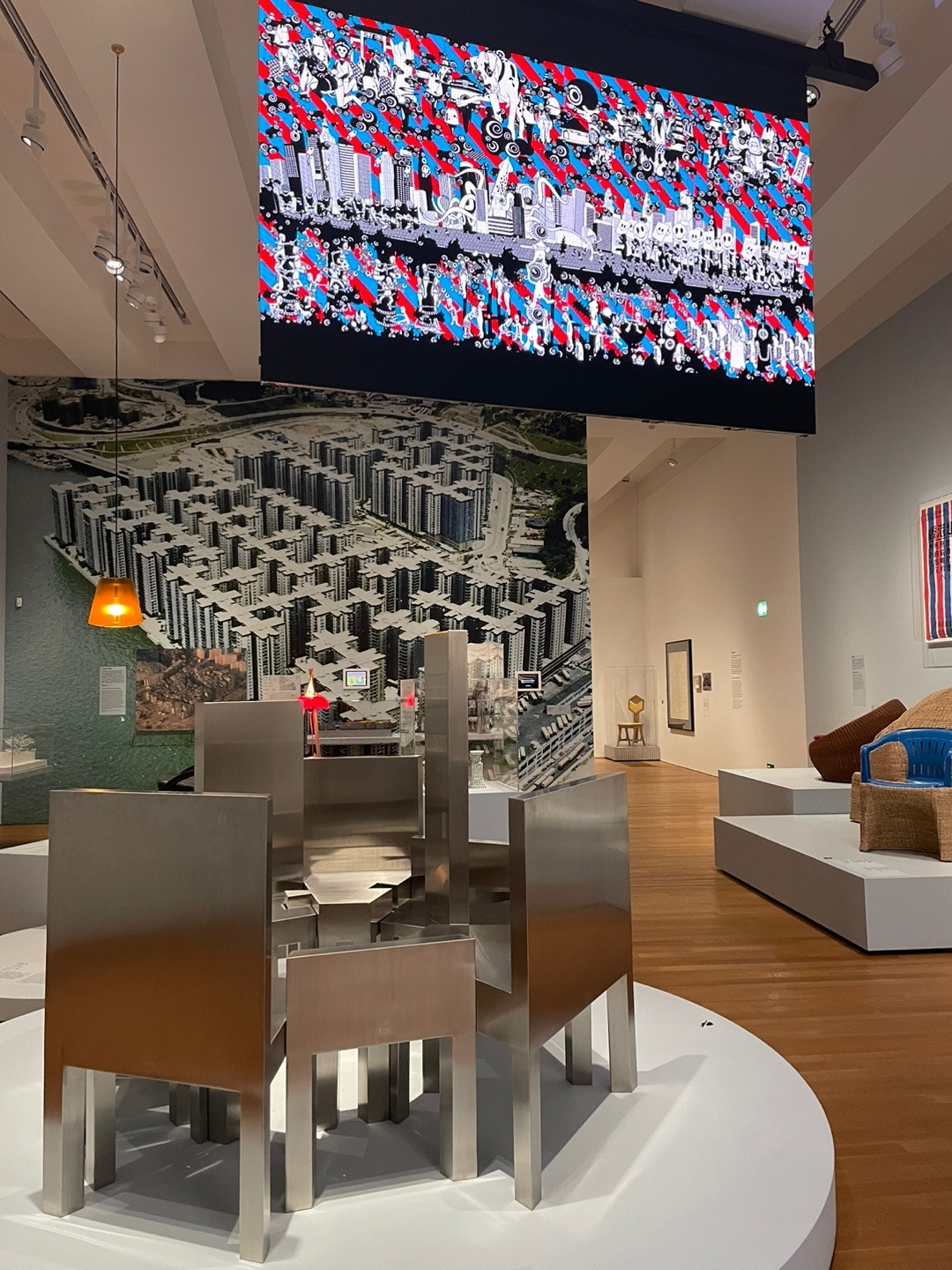 가장 첫 번째 섹션으로 아시아와 나머지 세계의 가교 역할을 하는 유니크한 장소로써 ‘홍콩’이라는 지리적 맥락 안에서 디자인과 건축을 다룬다. 이러한 인식은 영국의 통치 아래 있다가 1991년 중국에 반환된 홍콩의 식민지 역사를 바탕으로 한다. 이곳에 전시된 ‘Rattan Chair’는 홍콩 로컬 회사 ‘Kowloon Rattan Ware Company’가 1950년대에 생산한 정교한 수공예 기법이 돋보이는 의자로 홍콩인들에게 익숙하다. 또 브라질 디자이너, 페르난도 & 움베르토 캄파냐 형제가 짚풀을 활용해 만든 의자 ‘Una Famiglia(a family)’(2006, made 2019)를 전시했다. 이 작품은 플라스틱 폐기물이 전 세계적으로 증가하는 현상을 주목해 글로벌과 로컬, 산업과 공예, 럭셔리 상품과 일상의 사물의 경계를 하이브리드적 맥락에서 생각해 보도록 한다. 또 다른 의자 작품으로 ‘Rover Chair’(1981)는 론 아라드가 디자인한 첫 번째 의자로 그가 AA 건축학교를 졸업한 직후에 발표한 작품이다. 고철물점에서 주운 자동차 시트 등 기성품을 재활용해서 만든 이 의자는 론 아라드가 건축가가 아닌 디자이너로 커리어를 시작하는 데 결정적 역할을 했다.
