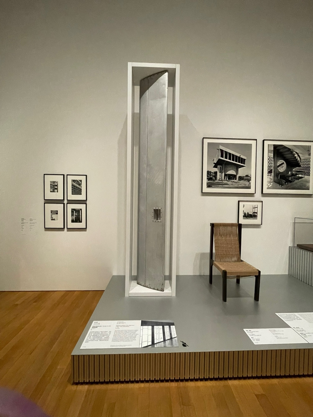 먼저 서구 건축가들이 아시아에 어떤 영향을 미쳤는지 알 수 있도록 두 가지 프로젝트가 전시됐다. 1922년 일본 도쿄에 문을 연 임페리얼 호텔은 프랭크 로이드 라이트가 설계한 건축으로 1960년대 철거됐다. 미국이 주도한 국제주의 건축의 유행이 일본에도 영향을 미쳤다는 설명과 함께 호텔 도면 일부와 사진, 연회장에서 사용됐던 프랭크 로이드 라이트가 디자인한 의자 ‘Peacock Chair’ 실물을 전시했다. 르코르뷔지에가 디자인한 알루미늄 ‘Ventilator Shutter(환기구)’는 인도 찬디가르 지역의 건물에서 흔히 발견되는데 건축가는 이를 ‘neutralising wall(중립적인 벽)’이라고 불렸다. 엠플러스에 전시된 환기구는 현지 대법원에서 실제로 사용되었던 것으로 햇빛을 가리고 공기의 흐름을 제어하는 역할을 했다. 대체로 습한 식민지 기후에 적응하기 위한 건축가의 디자인 솔루션이라는 점에서 지배 국가와 피지배 국가 간의 관계와 디자이너의 역할에 관해 생각해 보도록 한다.