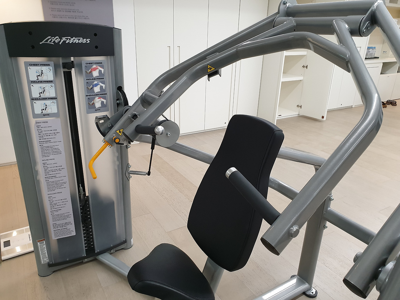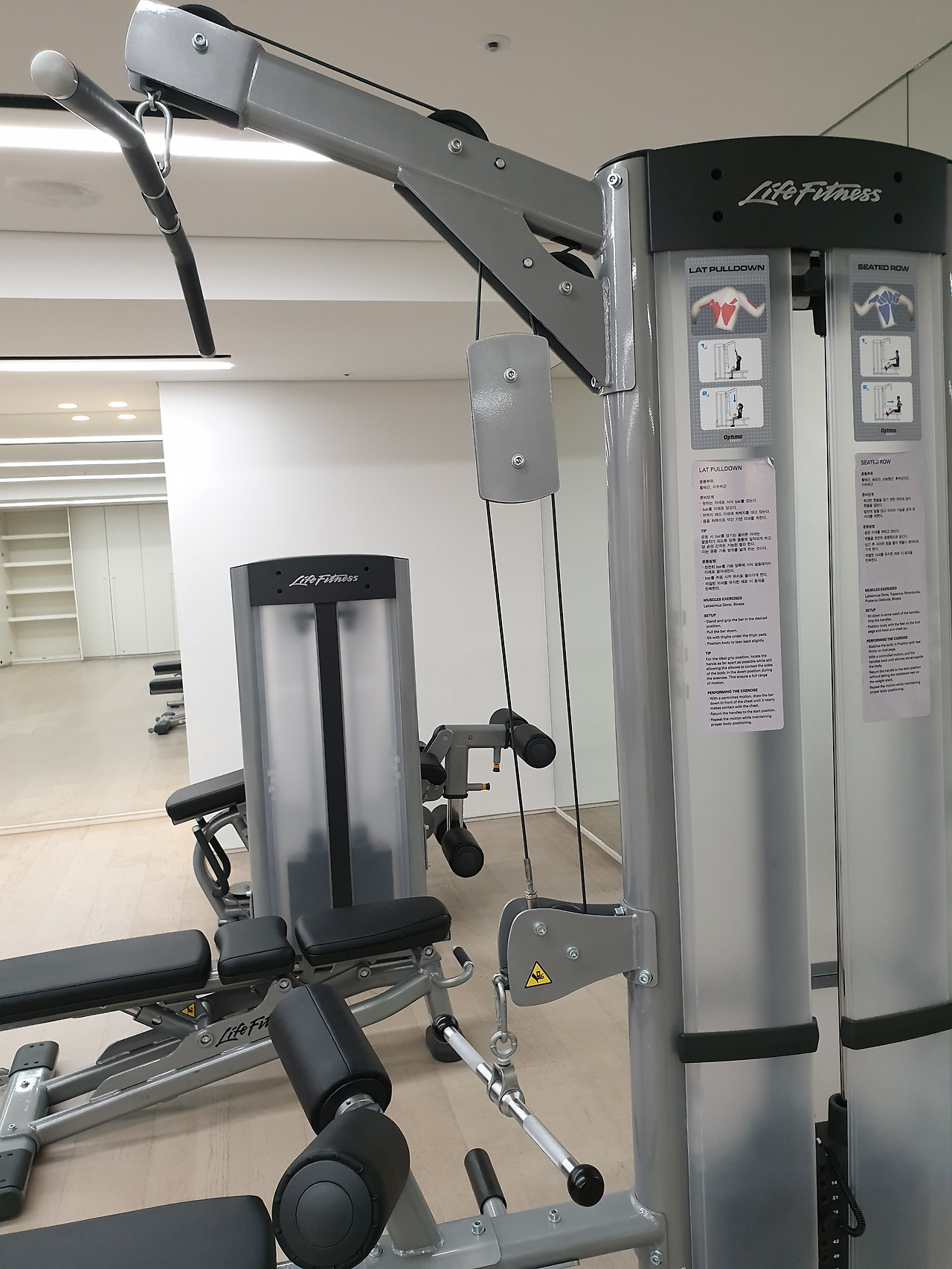 특히 체스트 프레스는 손잡이의 높낮이를 조절할 수 있는 멀티 유즈 머신이다. 각도 조절에 따라 가슴 중앙 부위, 가슴 상부 및 어깨 운동을 실시할 수 있다. 랫 풀다운 머신의 경우에도 아래쪽에 손잡이를 하나 더 마련하여 시티드 로우 운동을 할 수 있도록 했다.