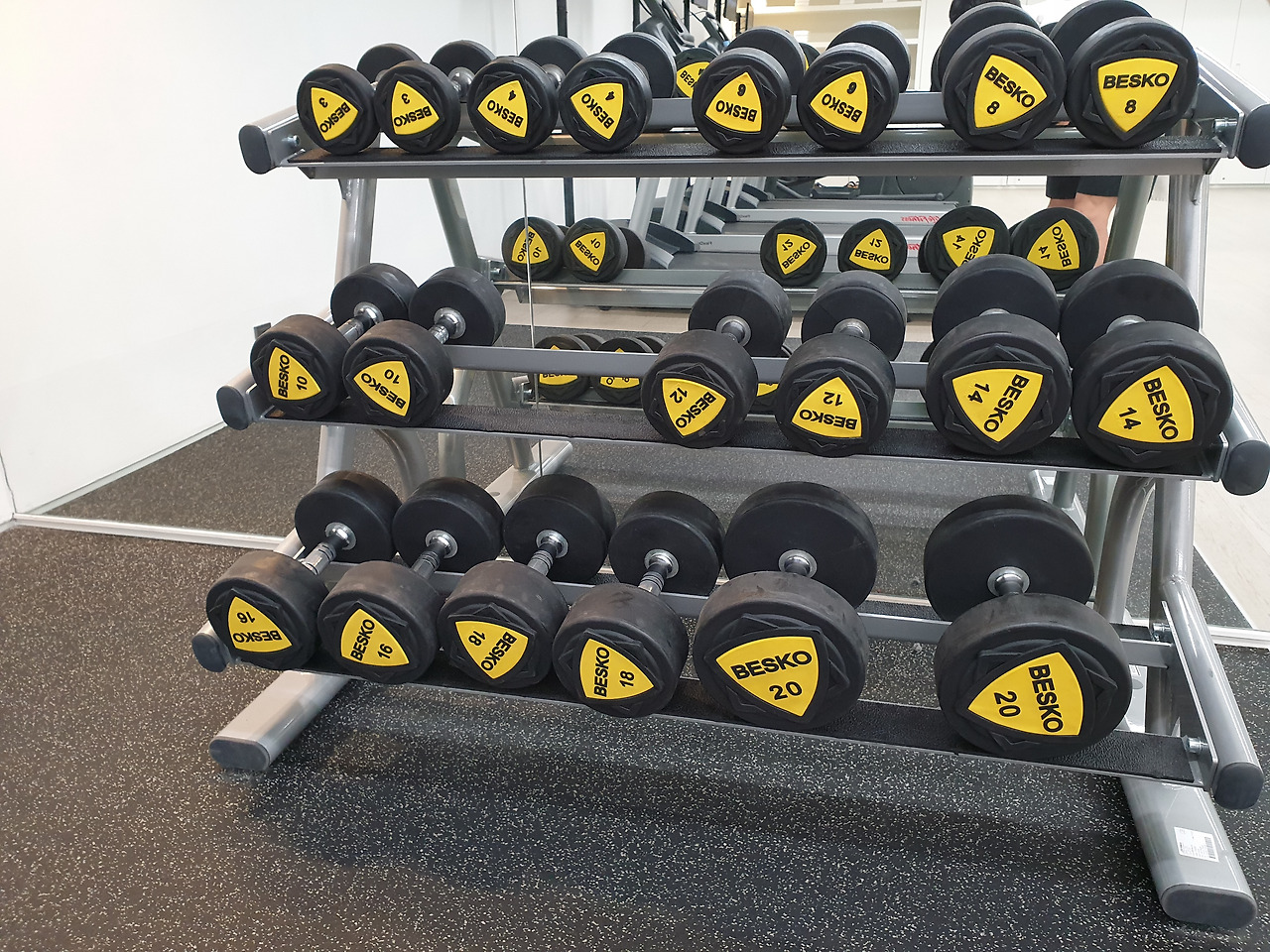 다만 덤벨 스탠드에는 최대 20kg까지의 덤벨들을 다양하게 구성해 놓아 덤벨을 활용한 운동을 하는 데는 무리가 없다.