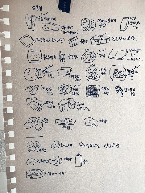이렇게 그림을 그려 냉장고 앞에 붙여두기도 한다.