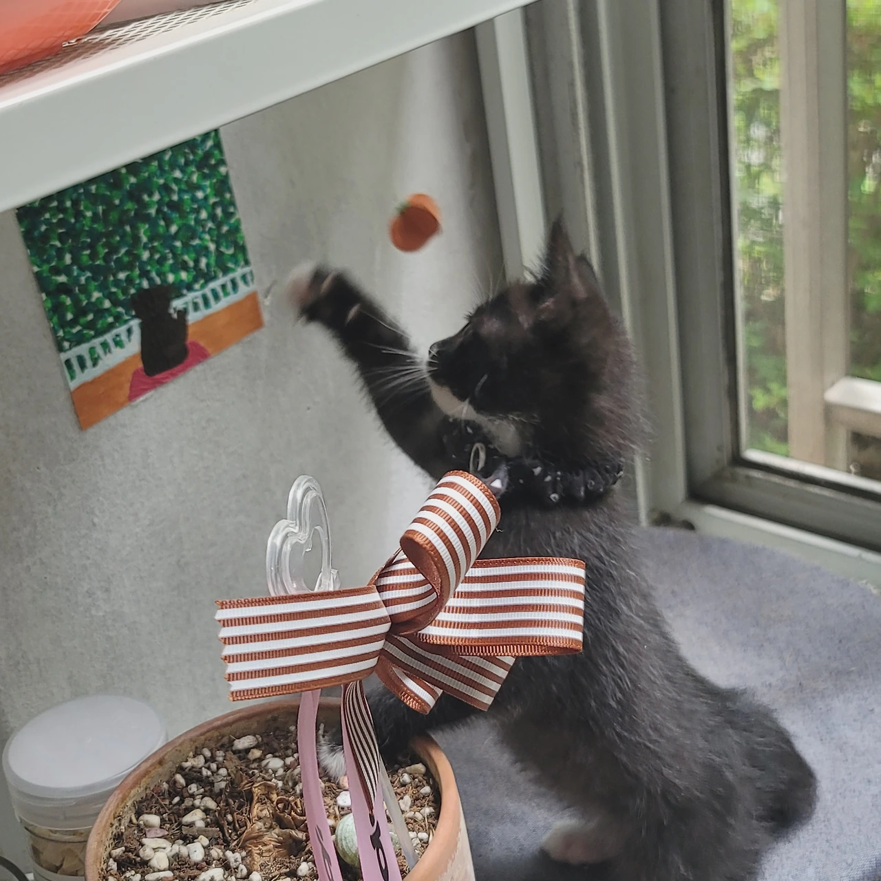 밤이되면 두 아이의 경쾌한 발소리가 난다. 쫓고 쫓기는 그런 우다다다~~하는 귀여운소리. 아직 작은 고양이인 흑미에게는 방울을 달아두어 어디에 있는지 알수있도록 표시해 두었다. 이 작은 아이가 작정하고 숨으면 절대 찾을 수 없을 테니까.