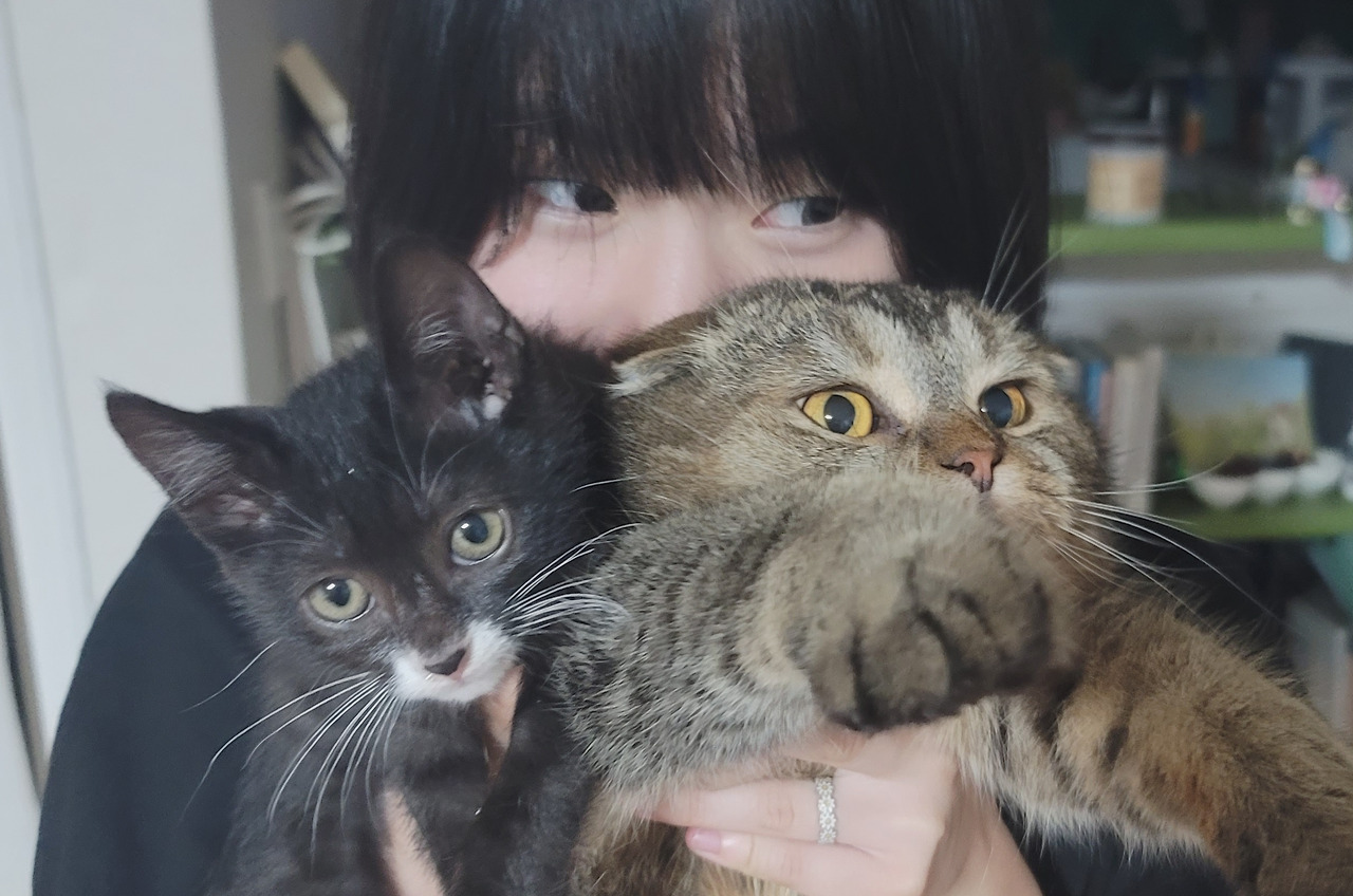 흑미는 절대 올라가지 못할 것이라고 생각했던 천장까지 닿는 캣타워에 이 작은 아이가 혼자 스스로 올라섰을때, 나는 흑미에게 자신만의 휴식처를 빼앗긴 온이가 걱정 되었다. 흑미는 적극적이고 호기심이 많고, 온이의 밥을 빼앗아 먹을 정도로 욕심이 많으며, 잠을 잘 때 내 옆에서 자곤한다. 그래서 온이가 질투하지 않을까 걱정하며 항상 온이를 먼저 안아주고 밥도 먼저 주곤 한다.