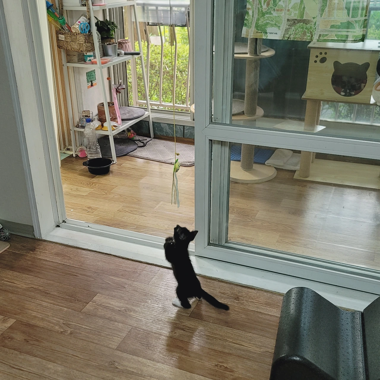 자신의 장난감을 내어주고 흑미가 가지고 노는 것을 지긋이 쳐다본다. 어쩌면 온이는 자신이 직접 움직이고 노는 것보다, 그렇게 다른 동물이 노는 것들을 지켜보는 것을 좋아하는 걸지도 모르겠다. 그러고보면 온이는 창 밖에 다른 고양이나 새들이 놀러오면 그것을 보는 것을 좋아했다.