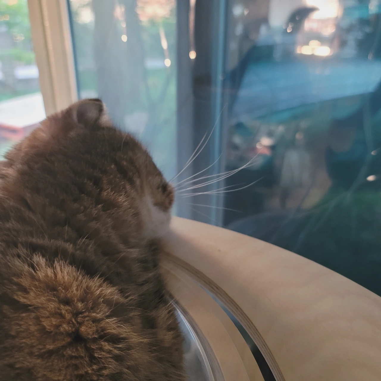 작은 흑미는 절대 올라오지 않을 거라고 생각했는지 온이는 가장 윗칸에서 늘 느긋하게 아래를 내려다보면서 시간을 보냈었다.