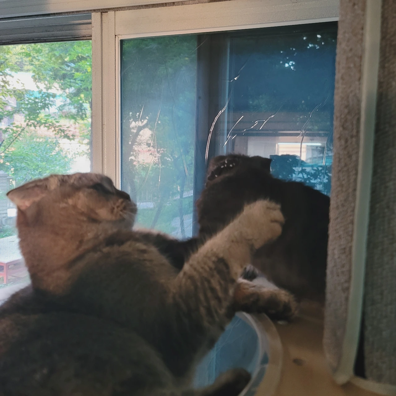 하지만 지금은 두 아이는 서로 함께하는 법을 배운 것같다. 때때로 하악질을 하면서도 때때로 둘째 흑미를 두리번 두리번 찾는 것을 보면 온이도 함께 하는 동생이 있다는 것을 즐겨 하는 것 같다.
