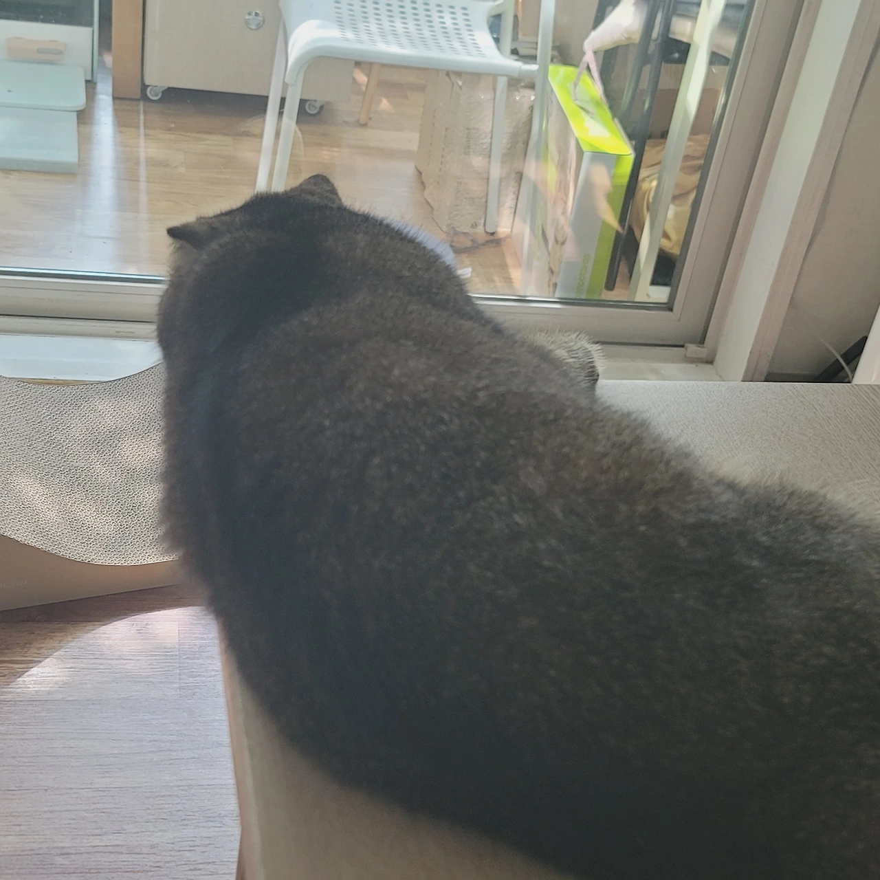 이 글을 쓰고 있는 지금은 내 앞에 흑미가 앉아있고, 내 옆쪽으로 등을 돌리고 있는 온이가 꼬리를 탁탁 치고 있다. 리듬을 타듯이 말이다. 무엇인가 못마땅한 것인지, 아니면 그저 멍 때리고 있는 것인지.. 그런 온이의 뒷모습마저 너무나 귀엽다.