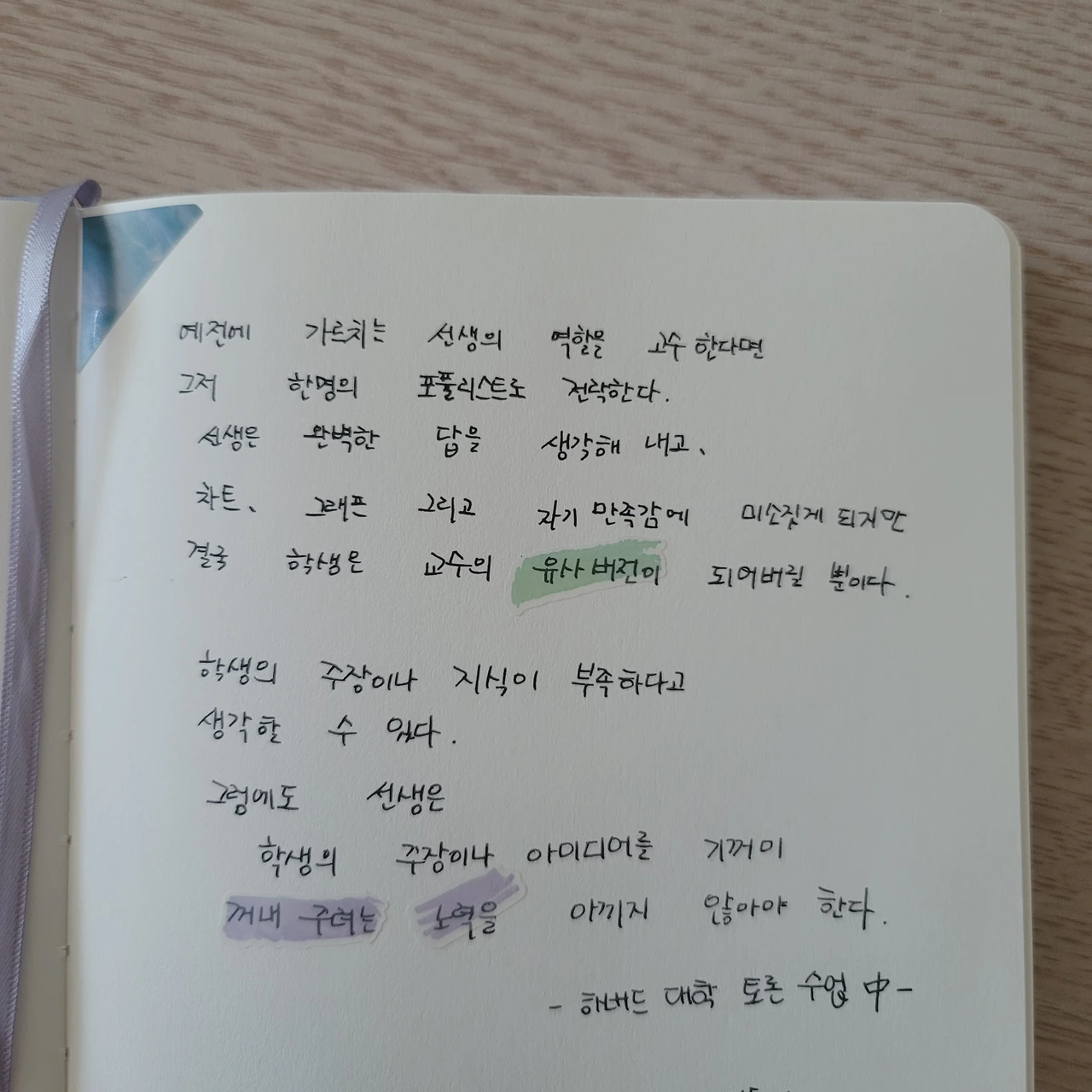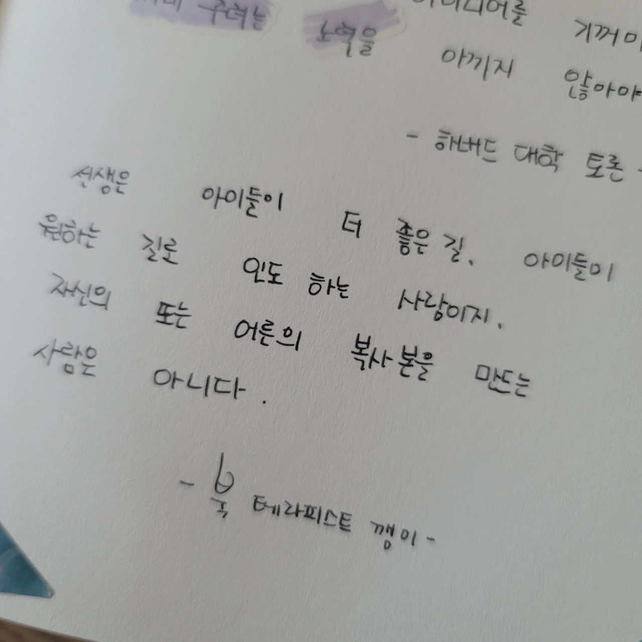 <선생은 학생의 주장이나 아이디어를 기꺼이 꺼내 주려는 노력을 아끼지 않아야 한다.>