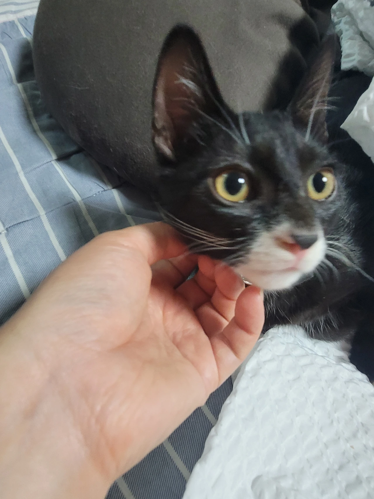 2개월 차가 된 온이가 우리 집에 왔을 때는 흑미만 했다. 아주 작디작은 나의 첫 고양이 온이는 몸은 땅콩만 했지만 귀가 잘 접혀 있어서 너무나 귀여웠다.