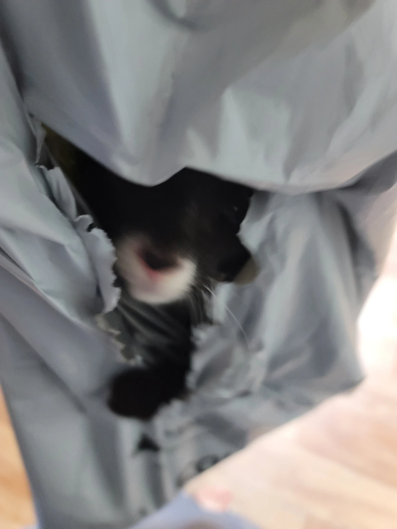 바스락바스락 거리는 소리가 거실 쪽에서 들려오면 또 흑미가 무슨 말썽을 부리지는 않을까 걱정이 앞선다. 가뜩이나 고양이가 두 마리가 되면서 여기저기 날리는 털과 두부모래와 벤토모래가 신경 쓰인다. 그래서 허겁지겁 밖으로 나가보면 아니나 다를까 흑미의 장난기 어린 눈빛과 마주친다.