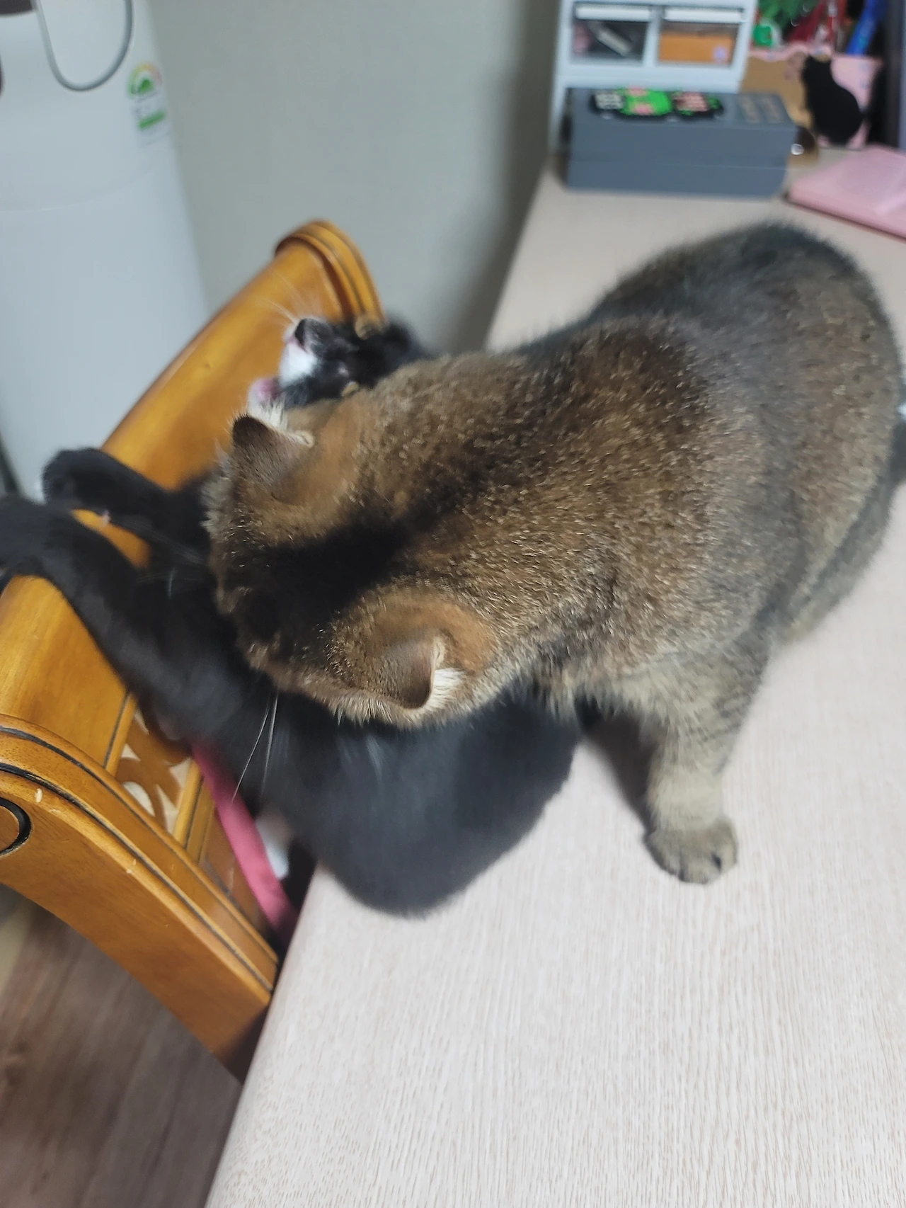 아이들이 잘 먹는 것을 확인하고, 나는 운동을 다녀와 씻고 아침식사를 준비한다. 요즘 건강식으로 식단을 바꾼 나는 양배추와 가지를 삶아서 닭가슴살을 넣어 싸 먹곤 한다. 이런 것들을 준비하는 것이 그리 어렵지는 않지만 매일 같은 일을 하려니 쉽지는 않다. 그러다 보니 내가 밥을 챙겨주면 잘 먹는 온이와 흑미, 그리고 자신들 만의 루틴으로 함께 뛰어다니고, 싸우고, 그러다가도 서로 그루밍을 해 주고, 그리고 낮잠을 자고 하는 아이들이 부러워졌다.