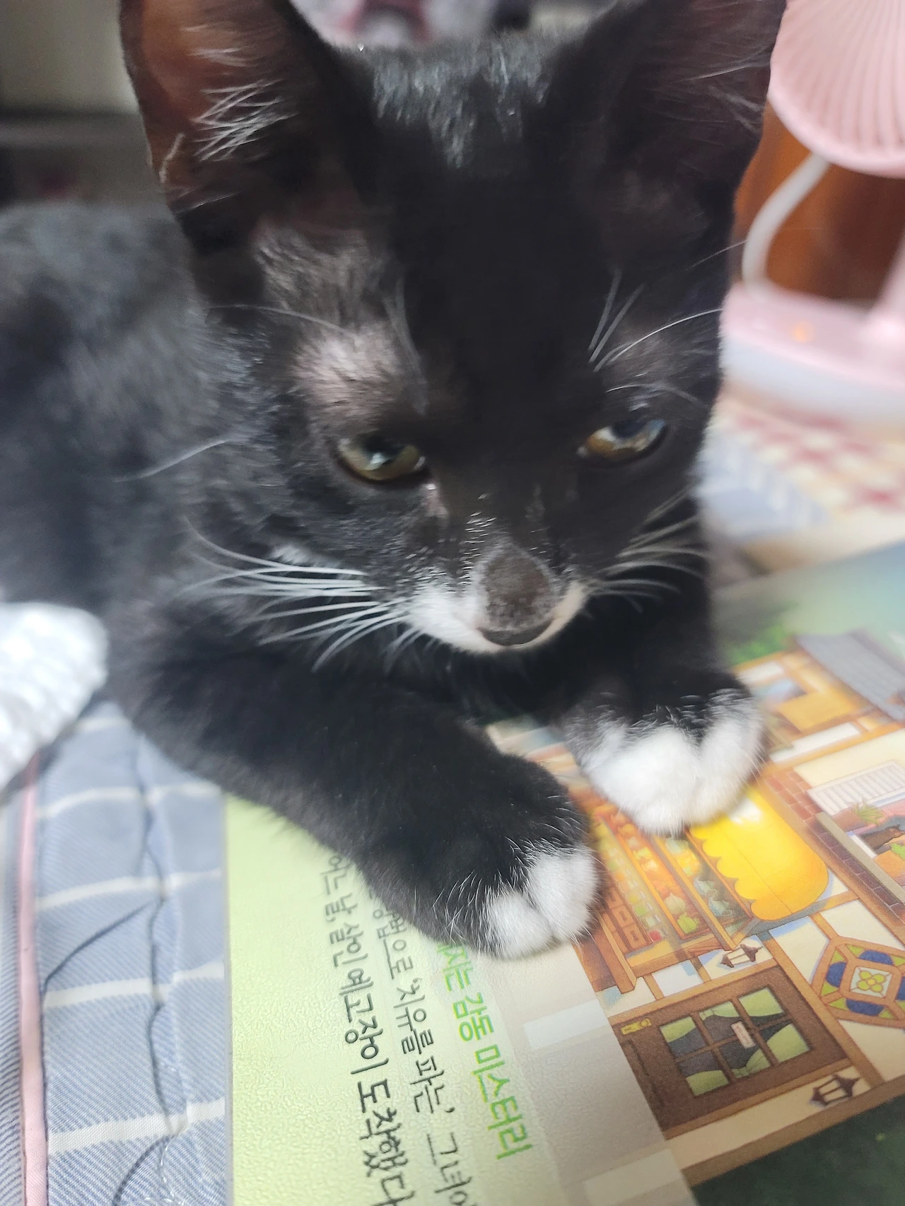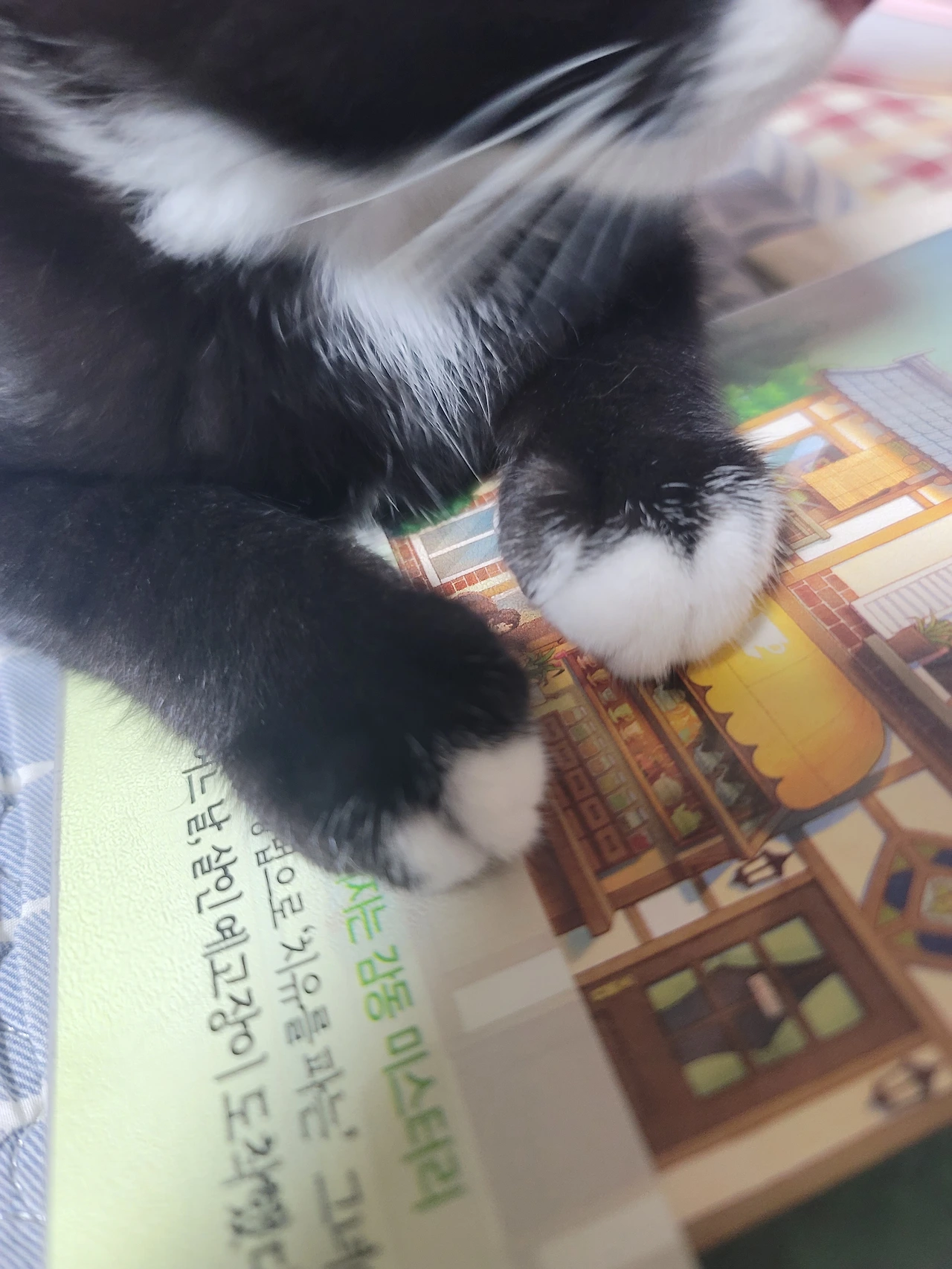 분명 화가 나는 상황이어야 하는데, 흑미의 덧신 신은 것 같은 손과 긴 양말을 신은 것 같은 뒷발, 그리고 흑미의 보드라운 털을 보니 누그러졌다. 놀고 싶었는데 엄마는 놀아주지 않으니 흑미 나름의 장난감을 발견했을 것이다. 흑미의 몸집에 비해 아직 우리 집은 모험을 할 만한 곳이 많은 걸지도 모른다. 심심해하지 않고 우리 집을 충분히 즐겨주고 있다는 것이 고맙게 느껴졌다.
