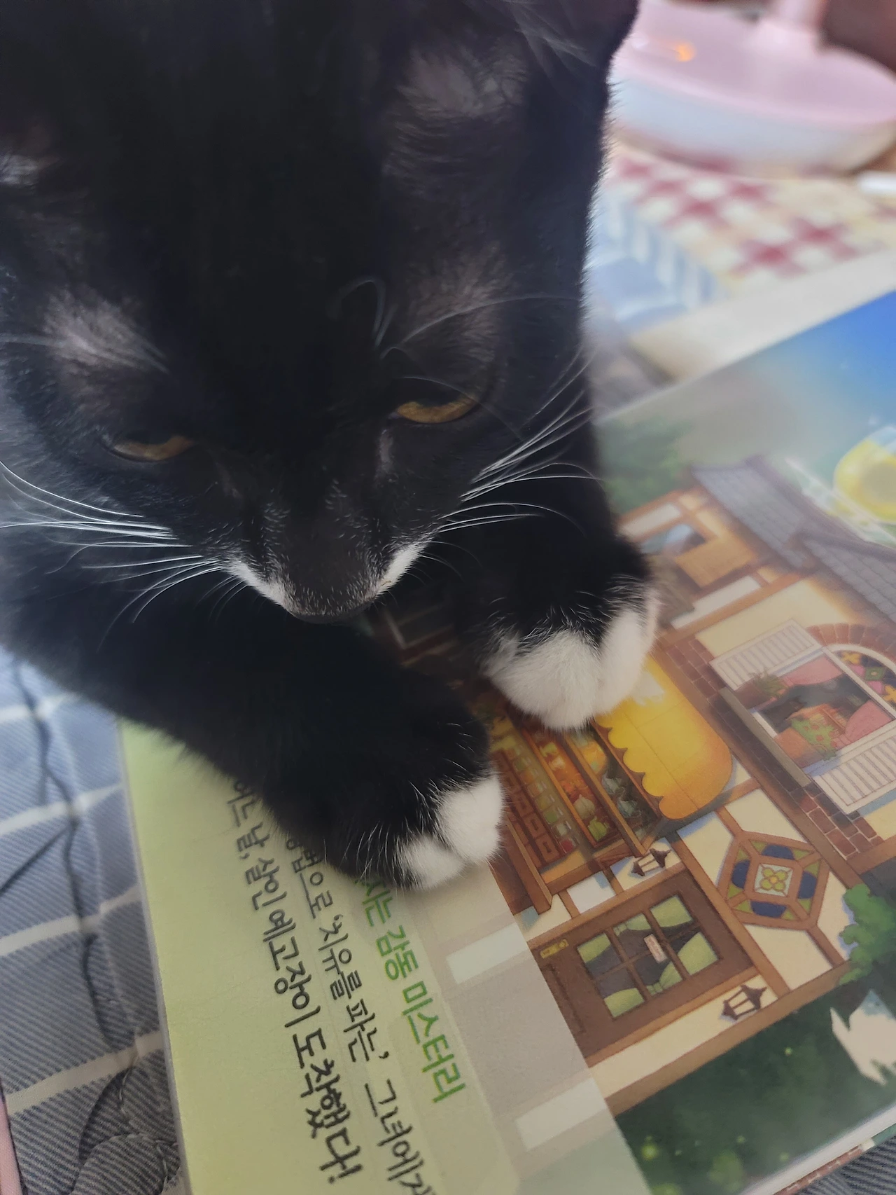 어디선가 바스락 거리는 소리와 함께 흑미가 흥분해서 낑낑, 냥냥 대는 소리가 들려왔다. 보통 흑미는 아직 어려서 그런지 화장실에서도 냥냥 끙끙 거리는 소리를 내는데, 가 보면 매우 만족스러운 표정으로 화장실 흙을 가지고 놀고 있거나 볼일을 보기에 이번에도 그런 류의 귀여운 소리겠거니 하며 일에 집중했다.