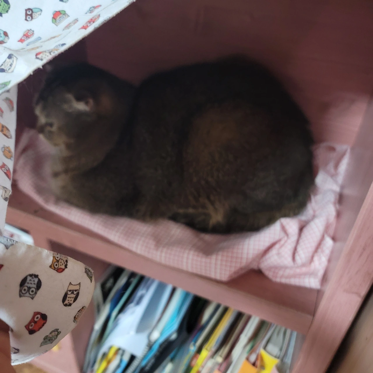 행여 엉덩이라도 배길까... 얇은 천을 겹쳐서 깔아주고, 오픈되면 흑미에게 들켜 자리를 쉽게 빼앗길 것 같기도 하여 손수건으로 가려 주었더니 제법 마음에 든 모양이다.